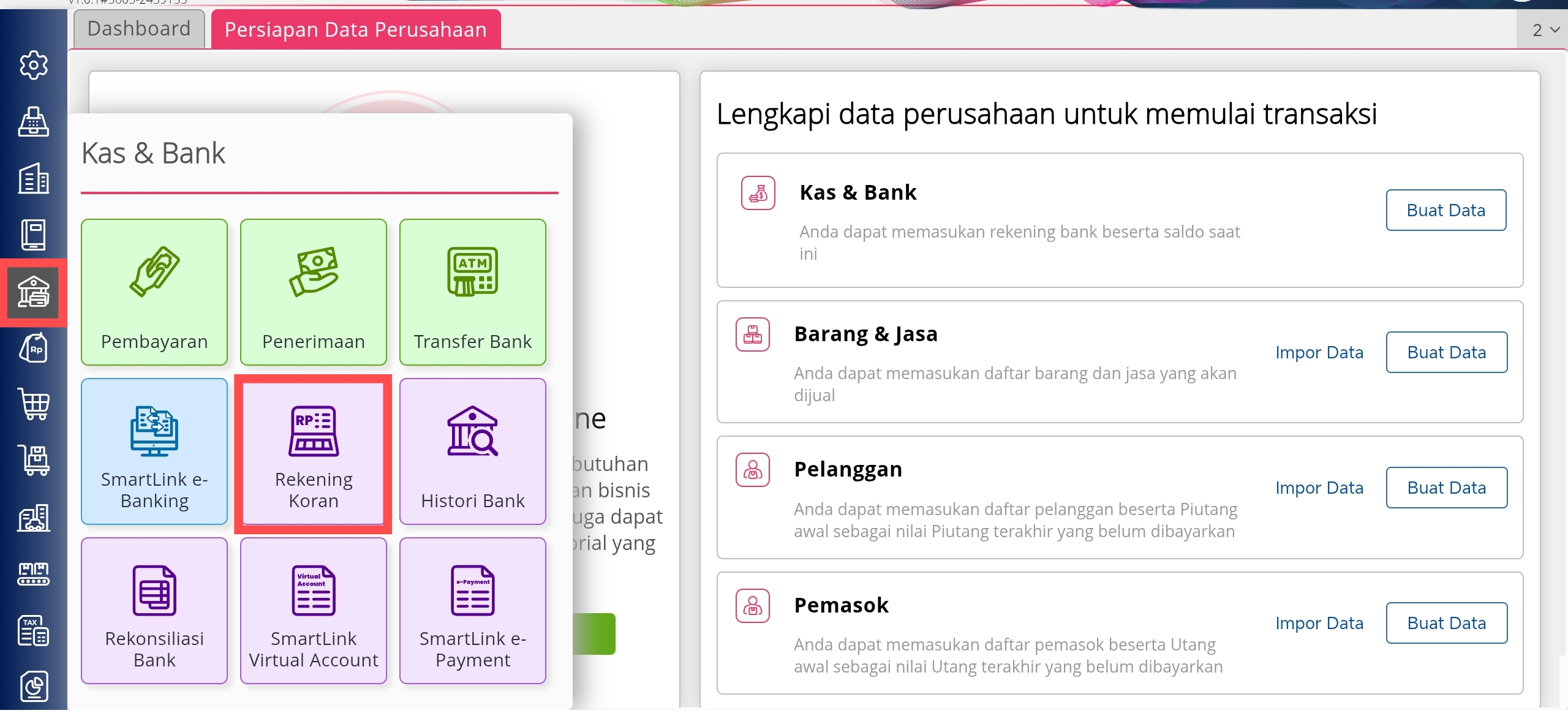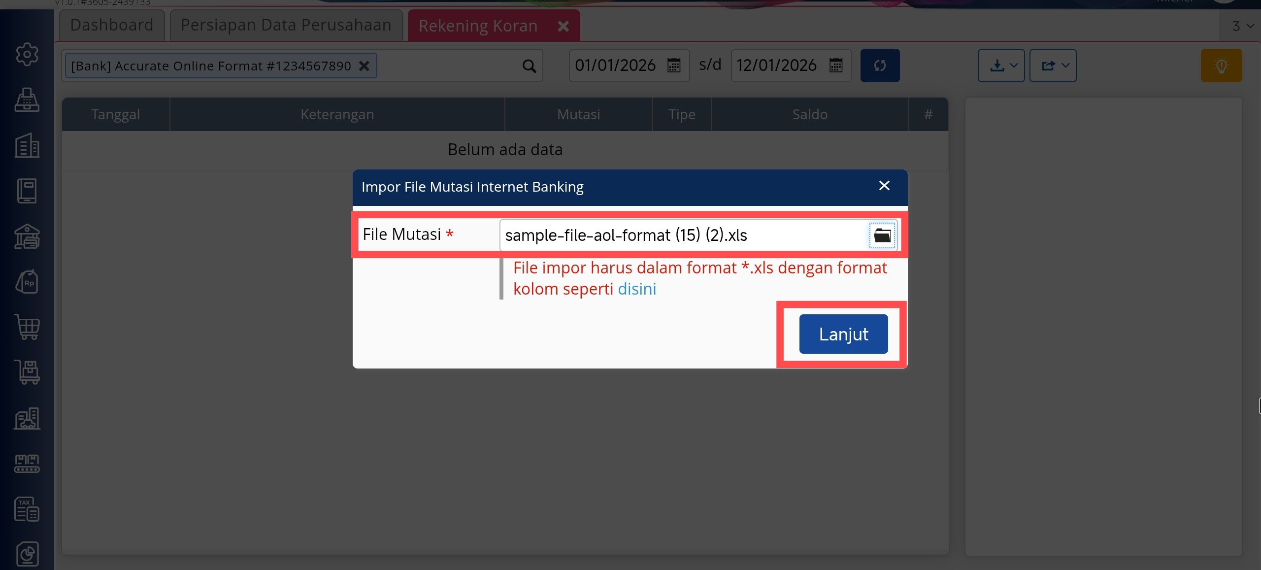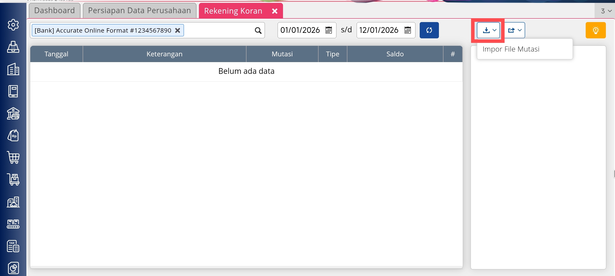 Berikut langkah-langkah untuk mengimpor rekening koran: