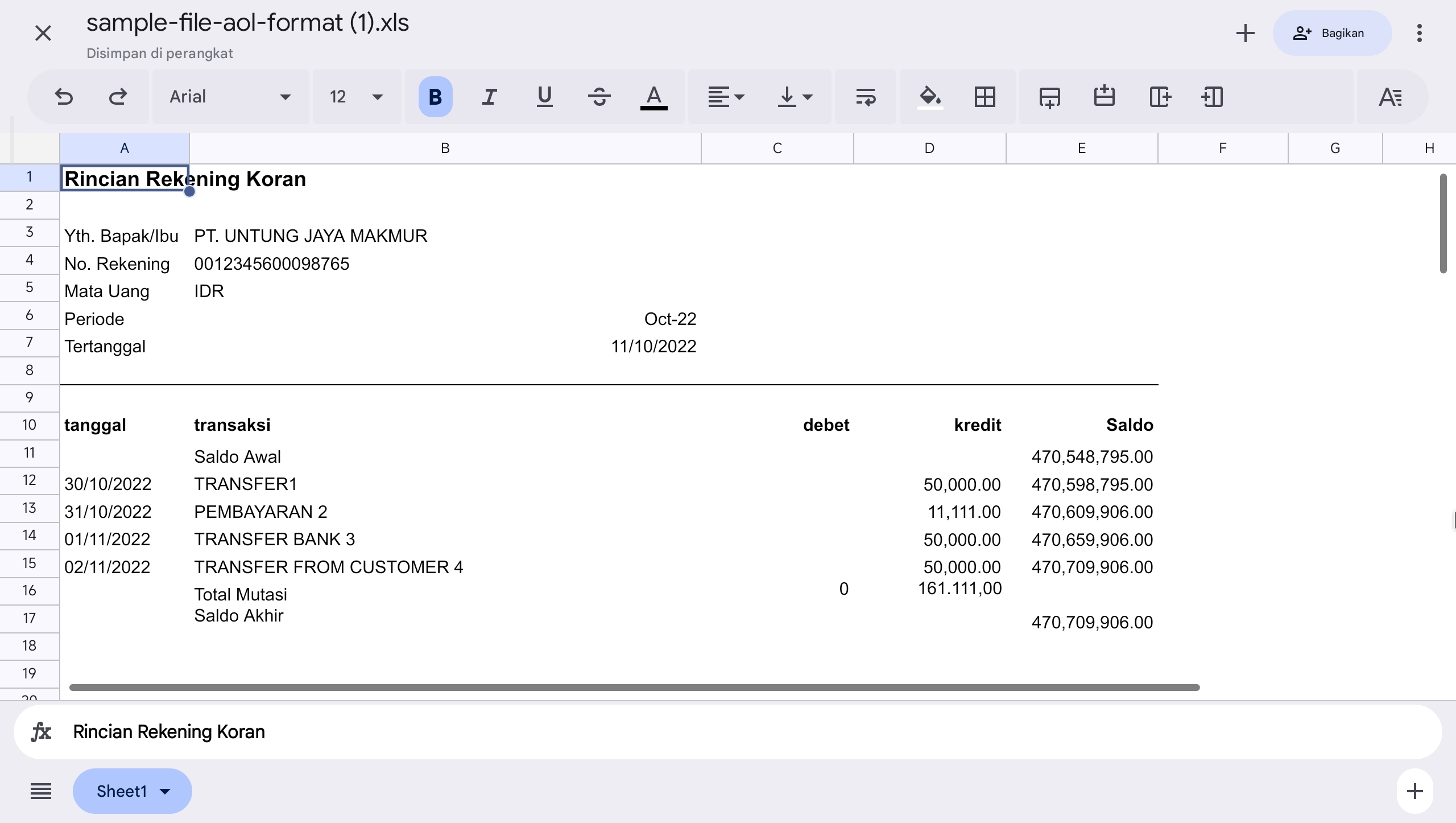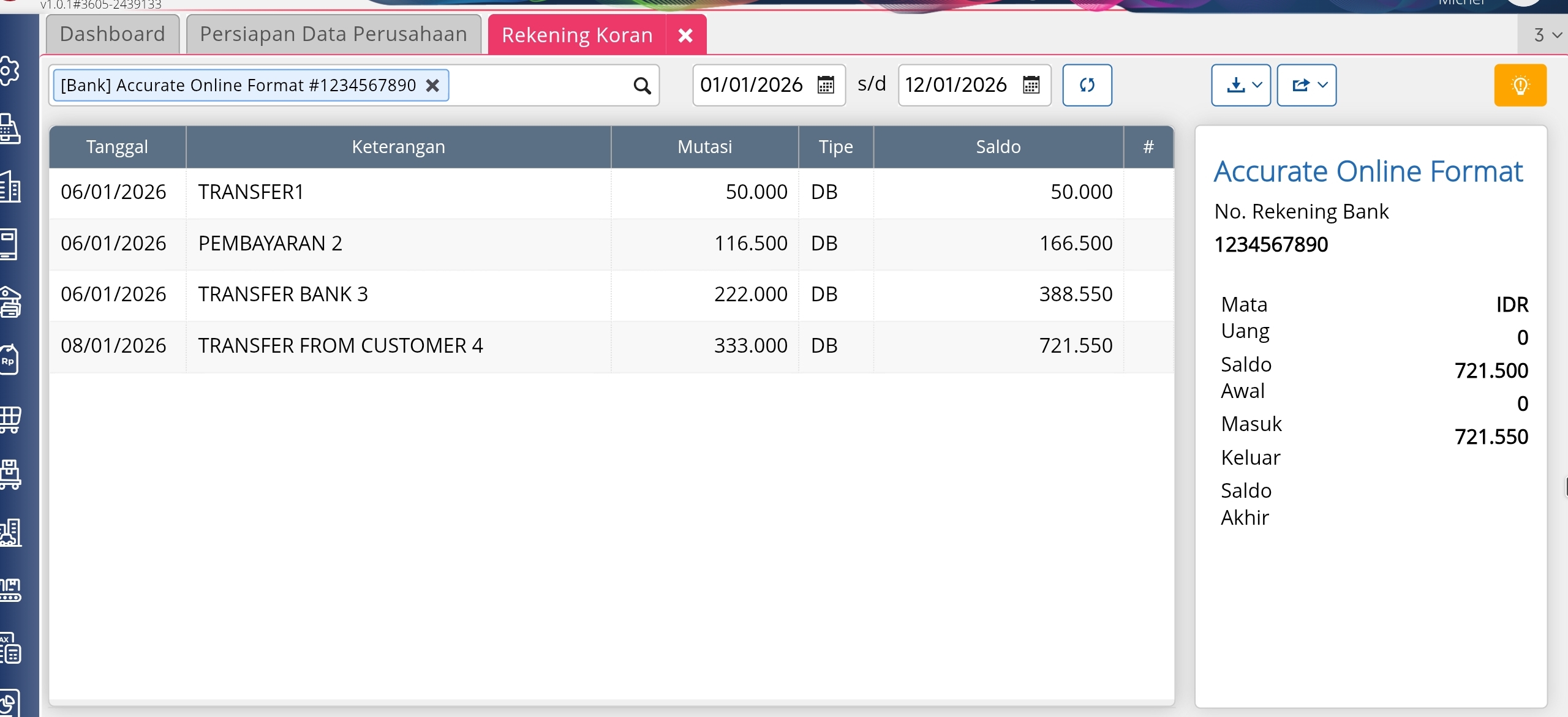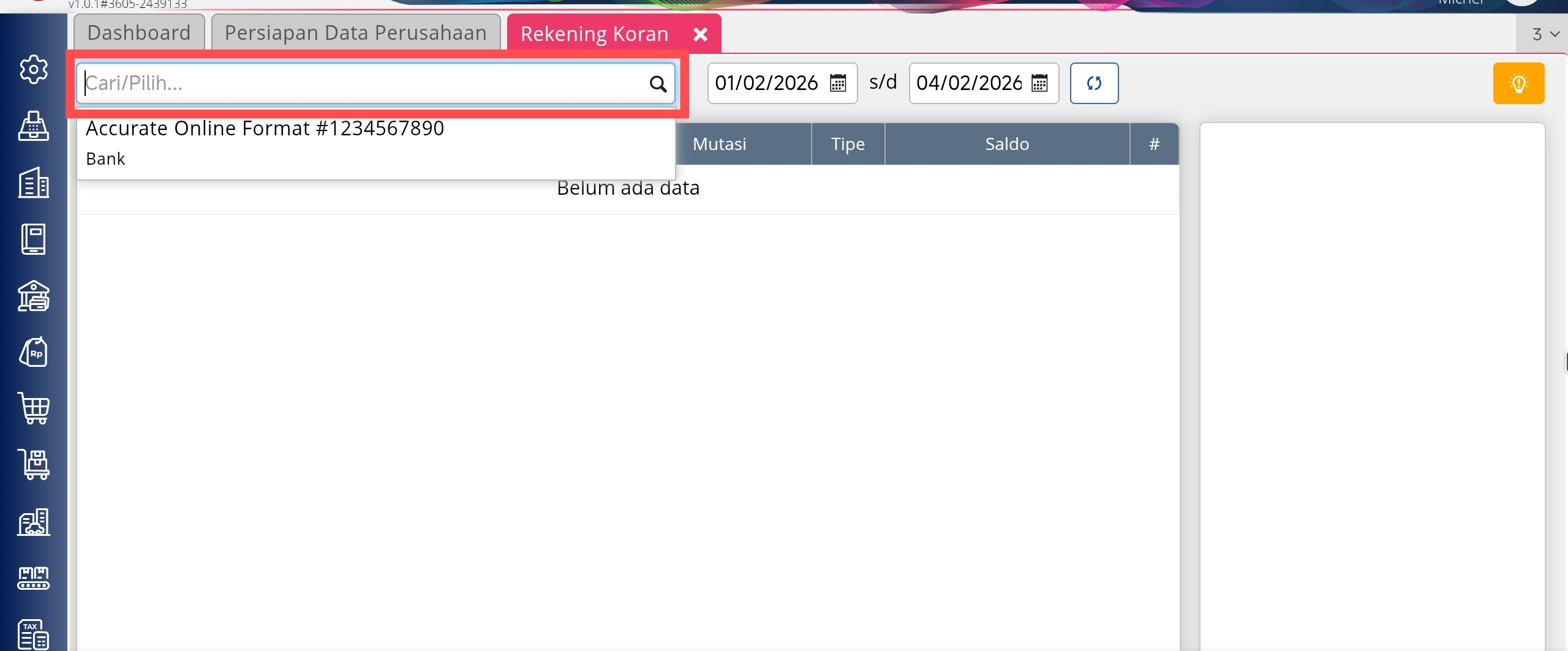 Berikut langkah-langkah untuk mengimpor rekening koran:
