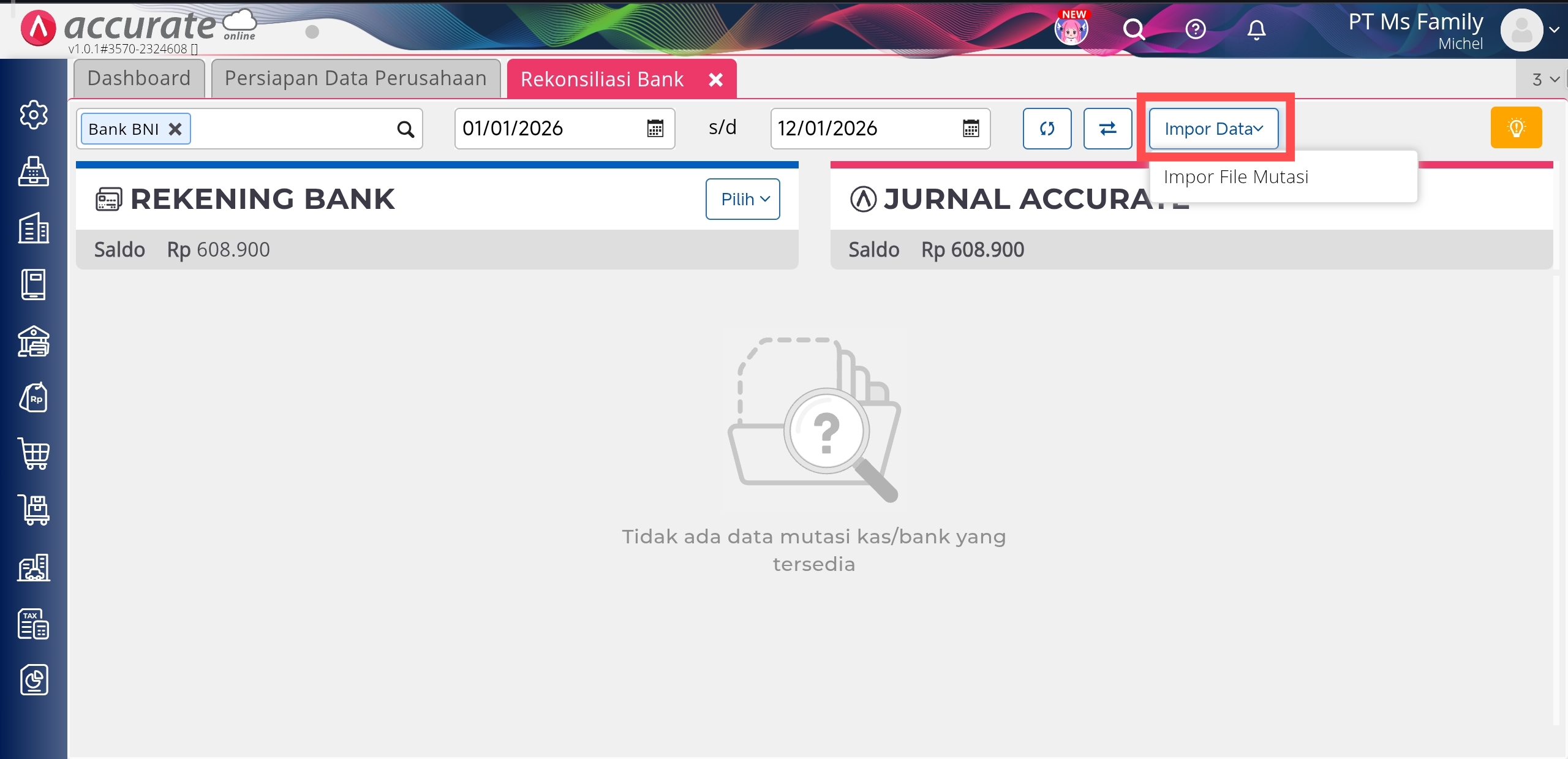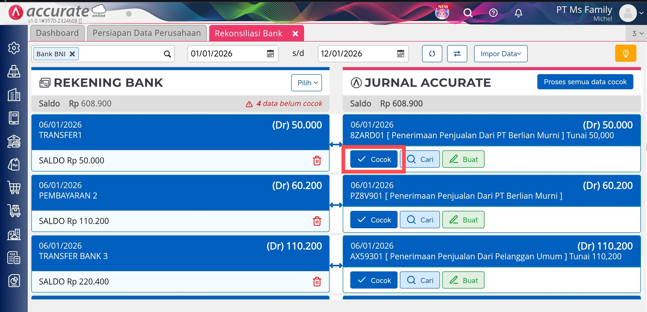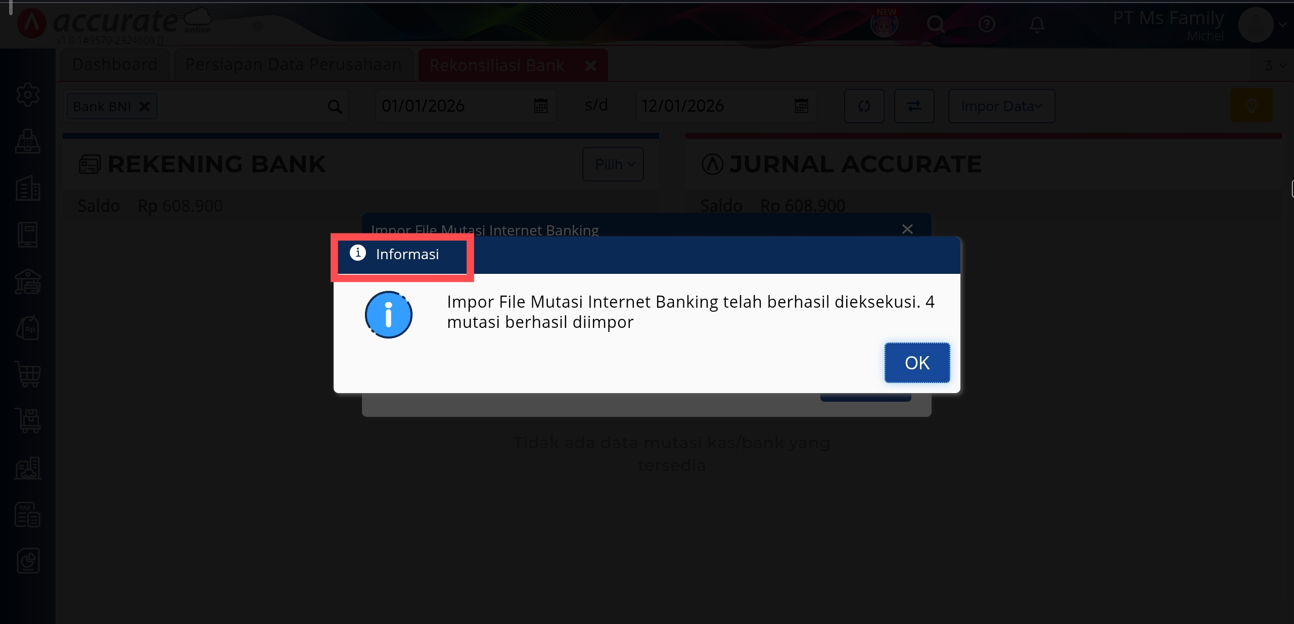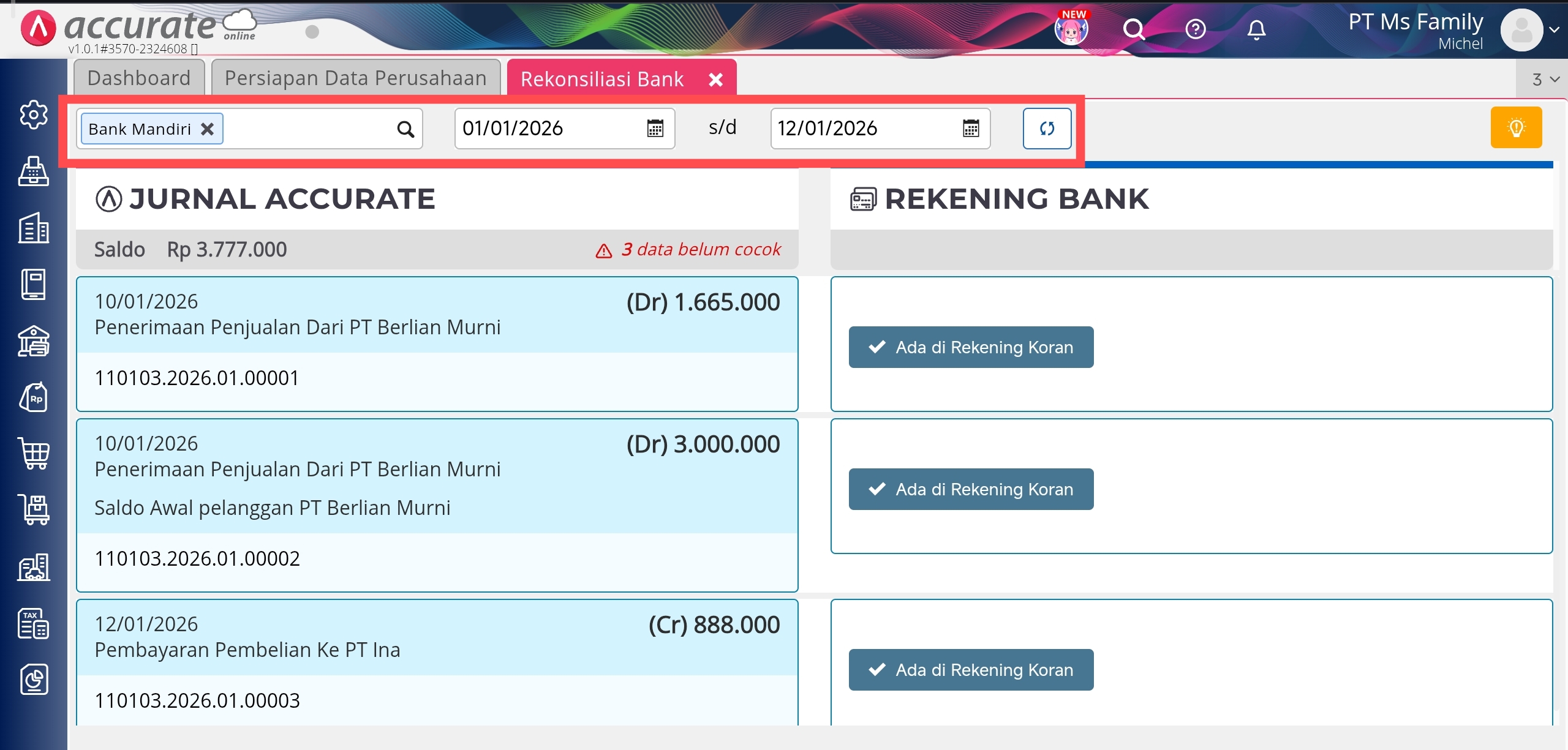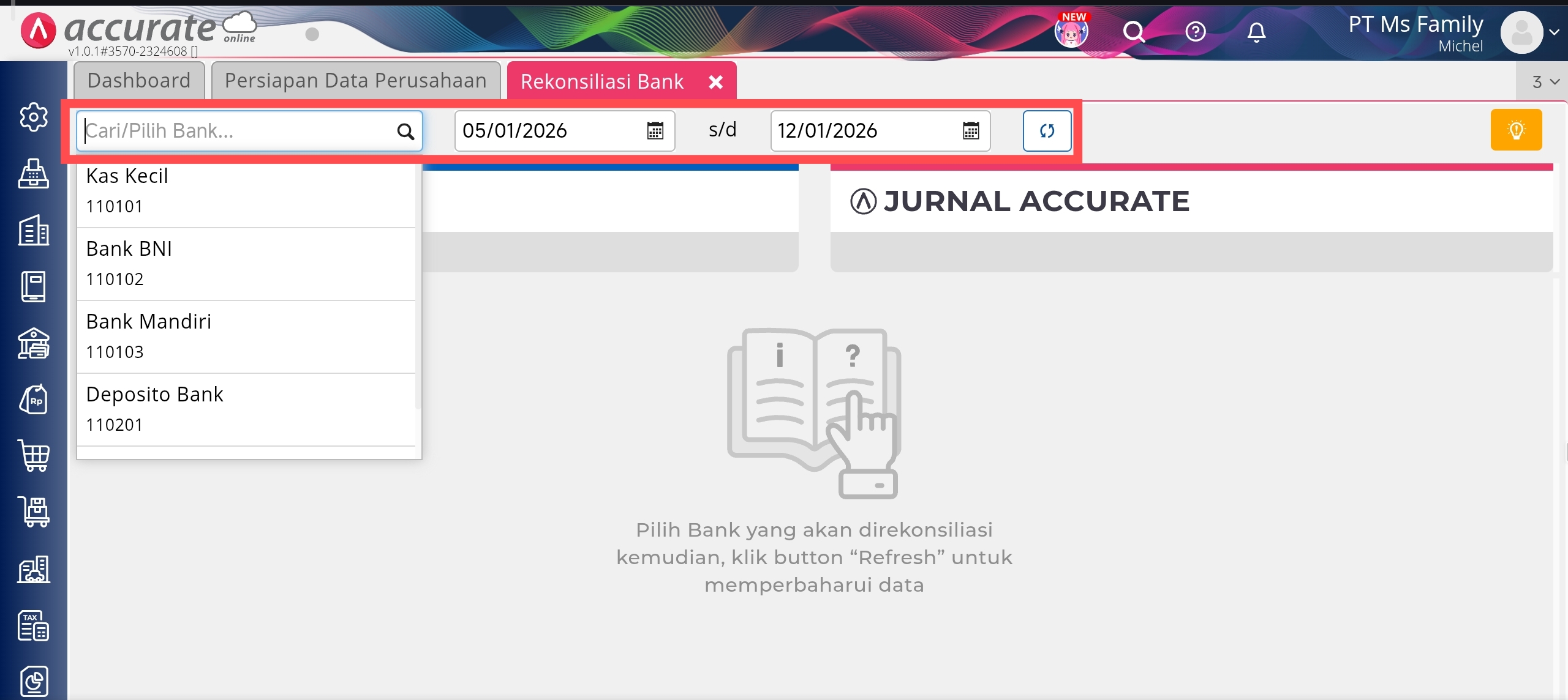 Konfirmasi Rekening Bank dan Jurnal Accurate sudah sesuai