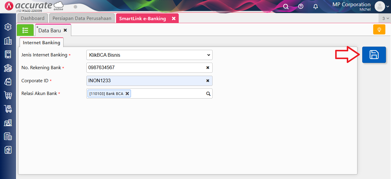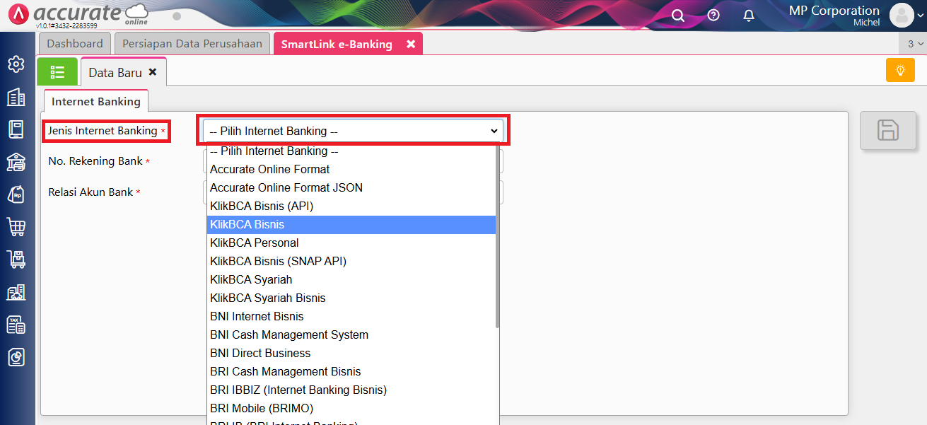 Cara untuk mendaftarkan Internet Banking pada fitur Smartlink e-Banking di Accurate Online adalah sbb: