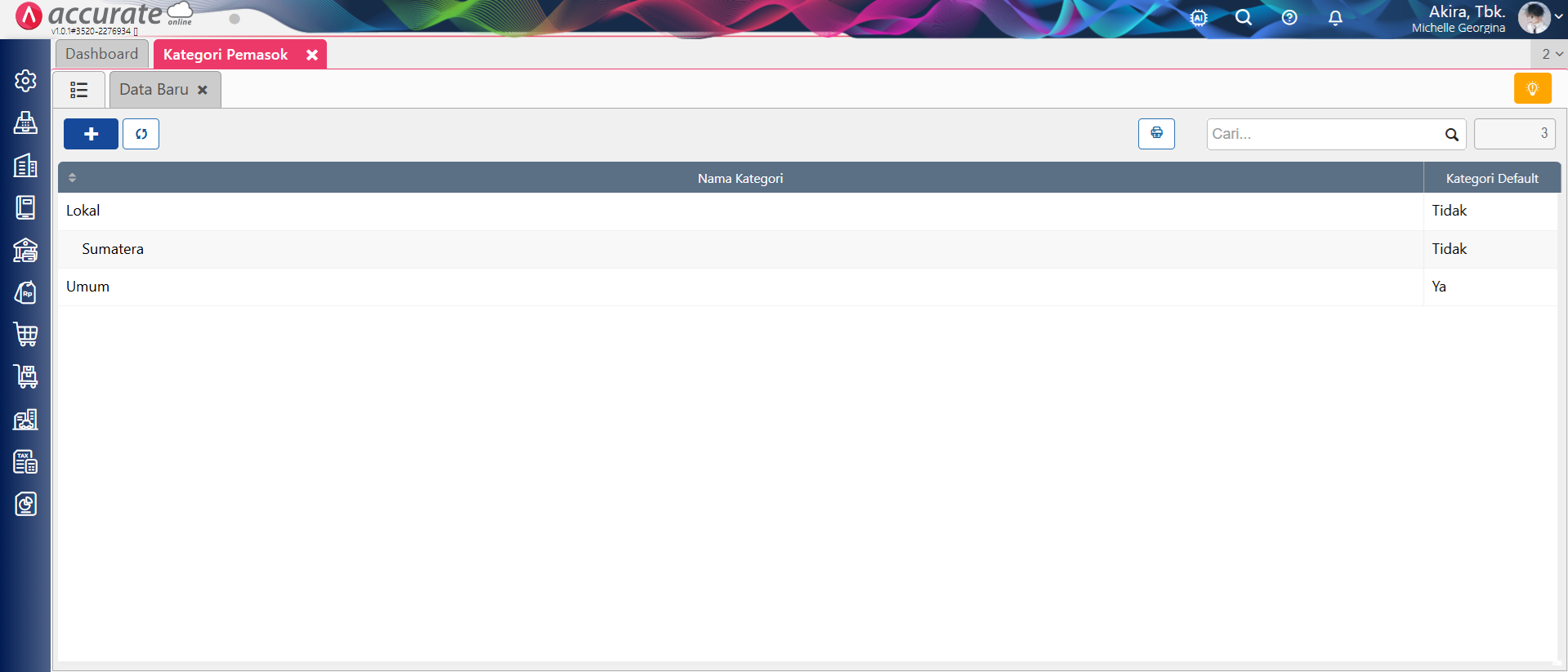 Cara membuat Kategori dan Sub kategori Pemasok adalah sbb: