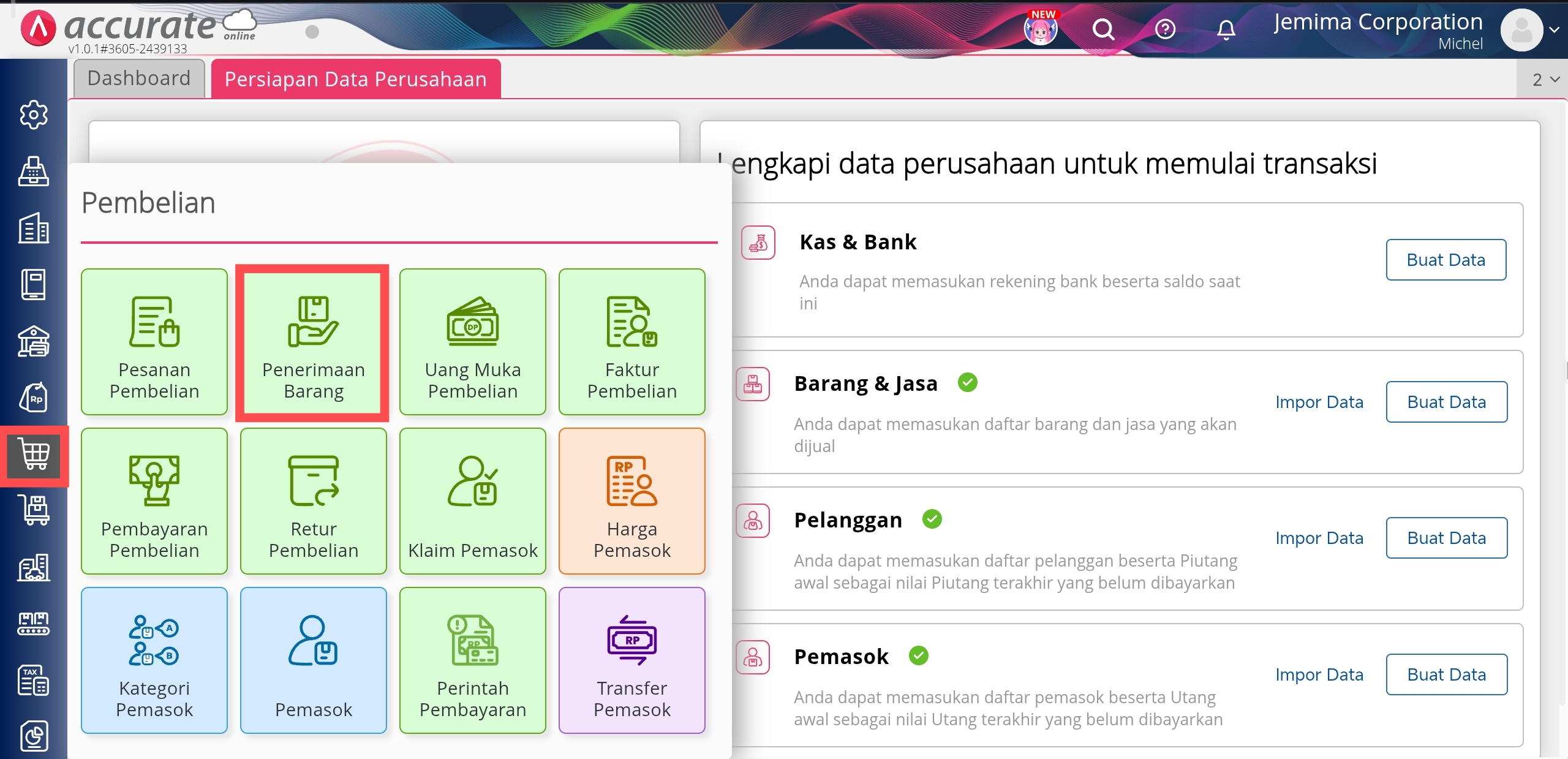 - Ke menu Pembelian | Penerimaan Barang.