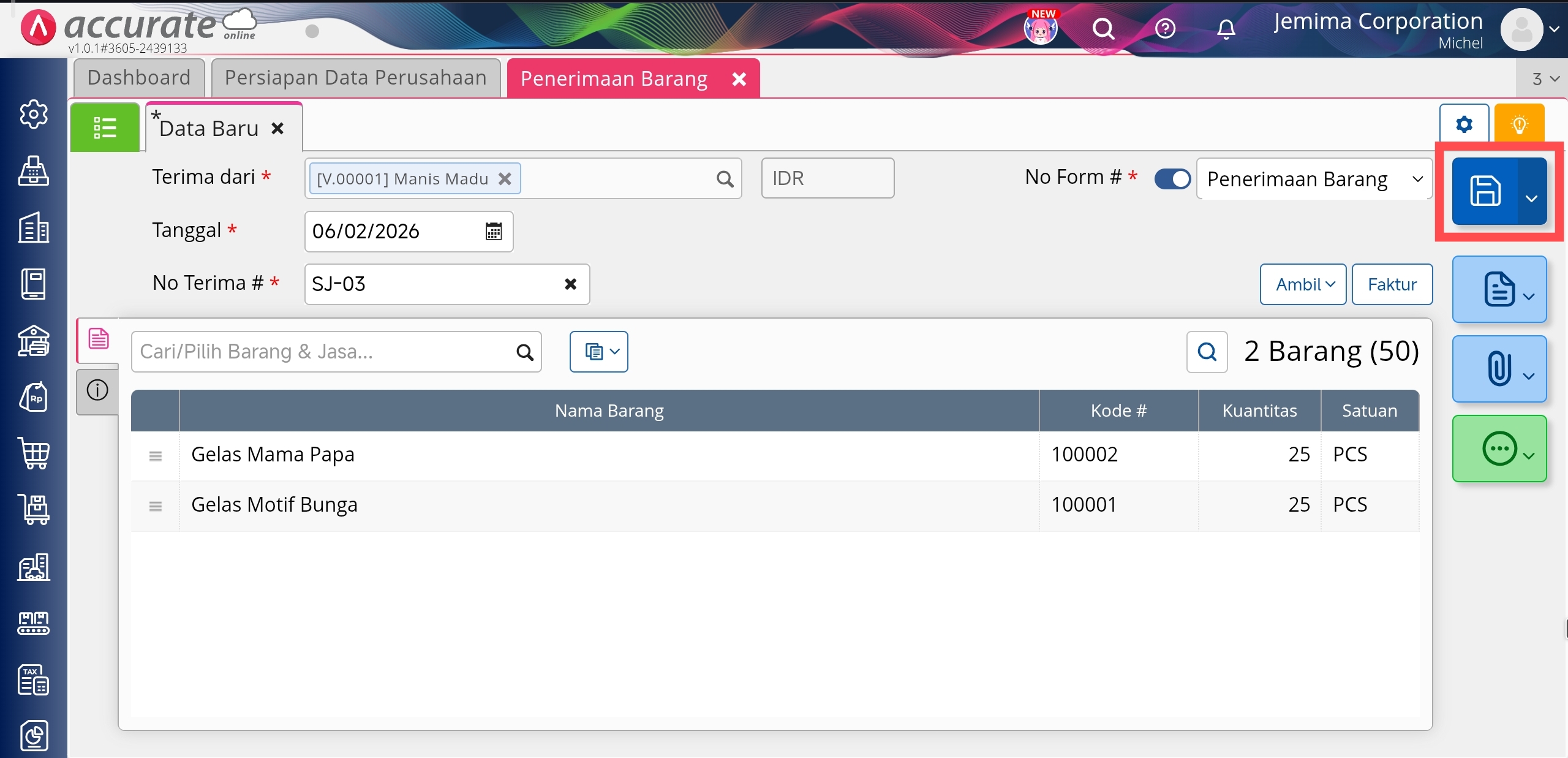 Simpan Penerimaan Barang