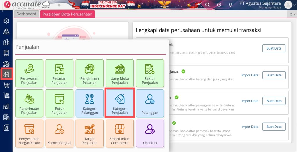 Cara untuk membuat Kategori Penjualan adalah sbb :