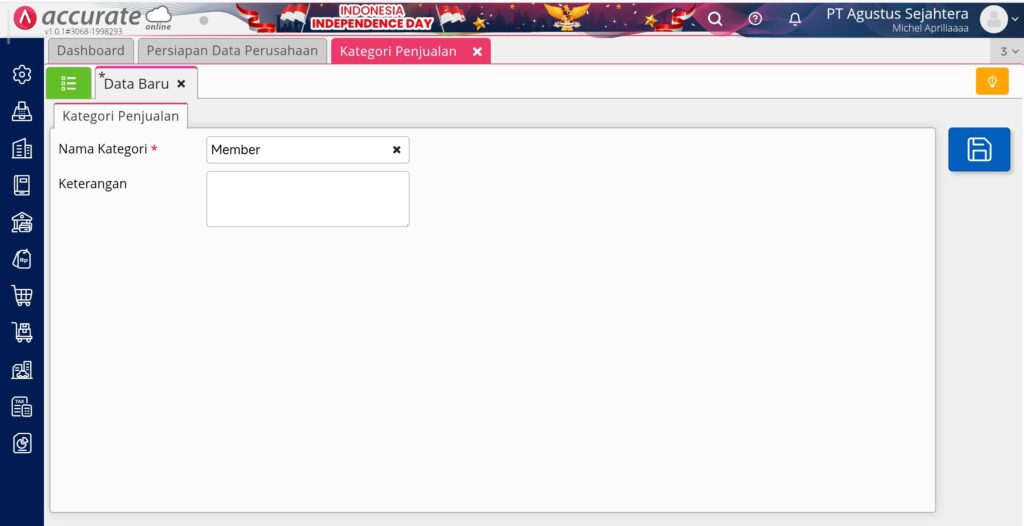 2. Berikan Nama Kategori Penjualan, lalu klik Simpan.