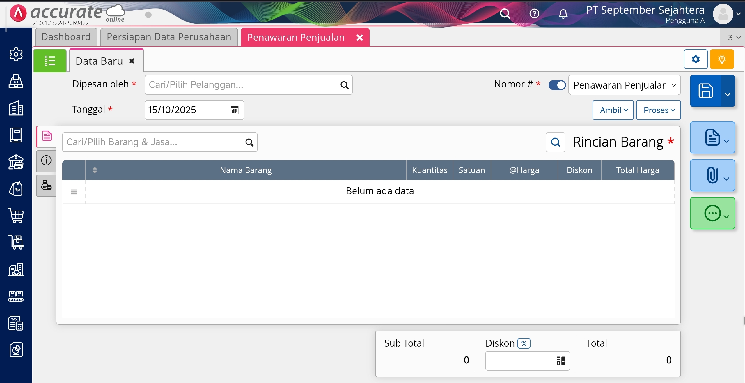- Diproses Oleh : dipilih dengan nama pelanggan yang akan anda buatkan atau berikan Penawaran Penjualan atas produk anda.