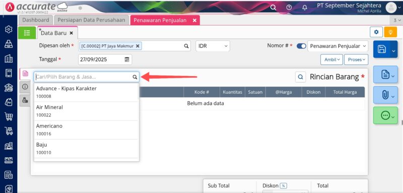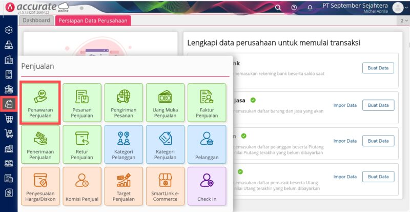 Untuk membuat penawaran penjualan di Accurate Online adalah sbb :