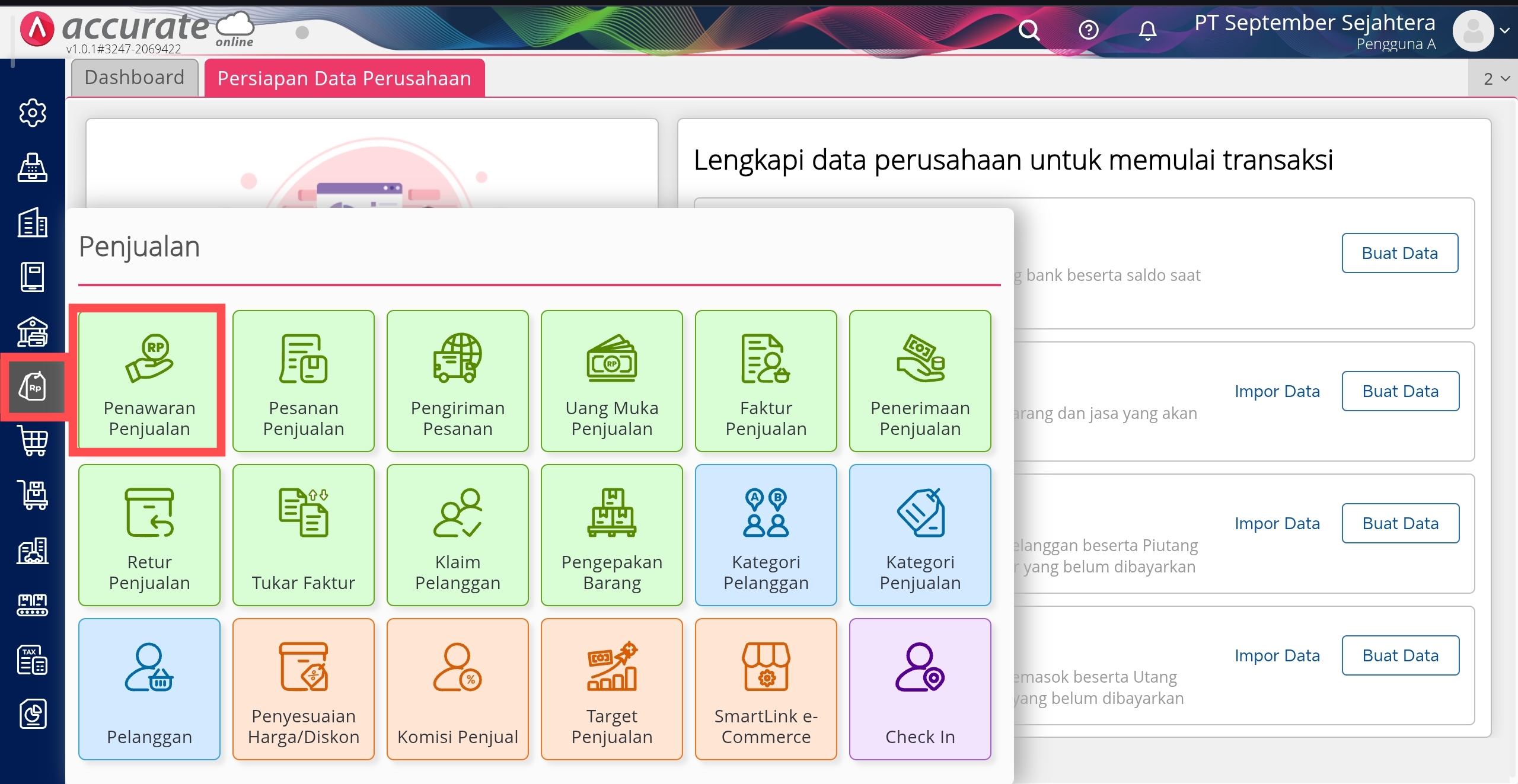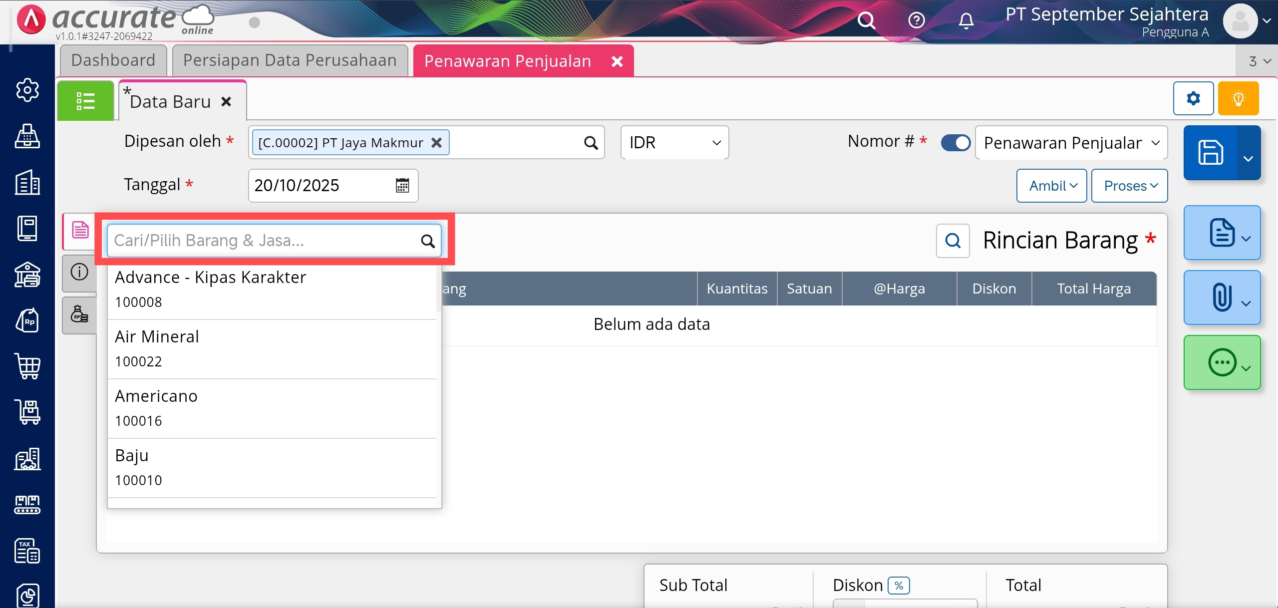1. Klik menu Penjualan | Penawaran Penjualan.