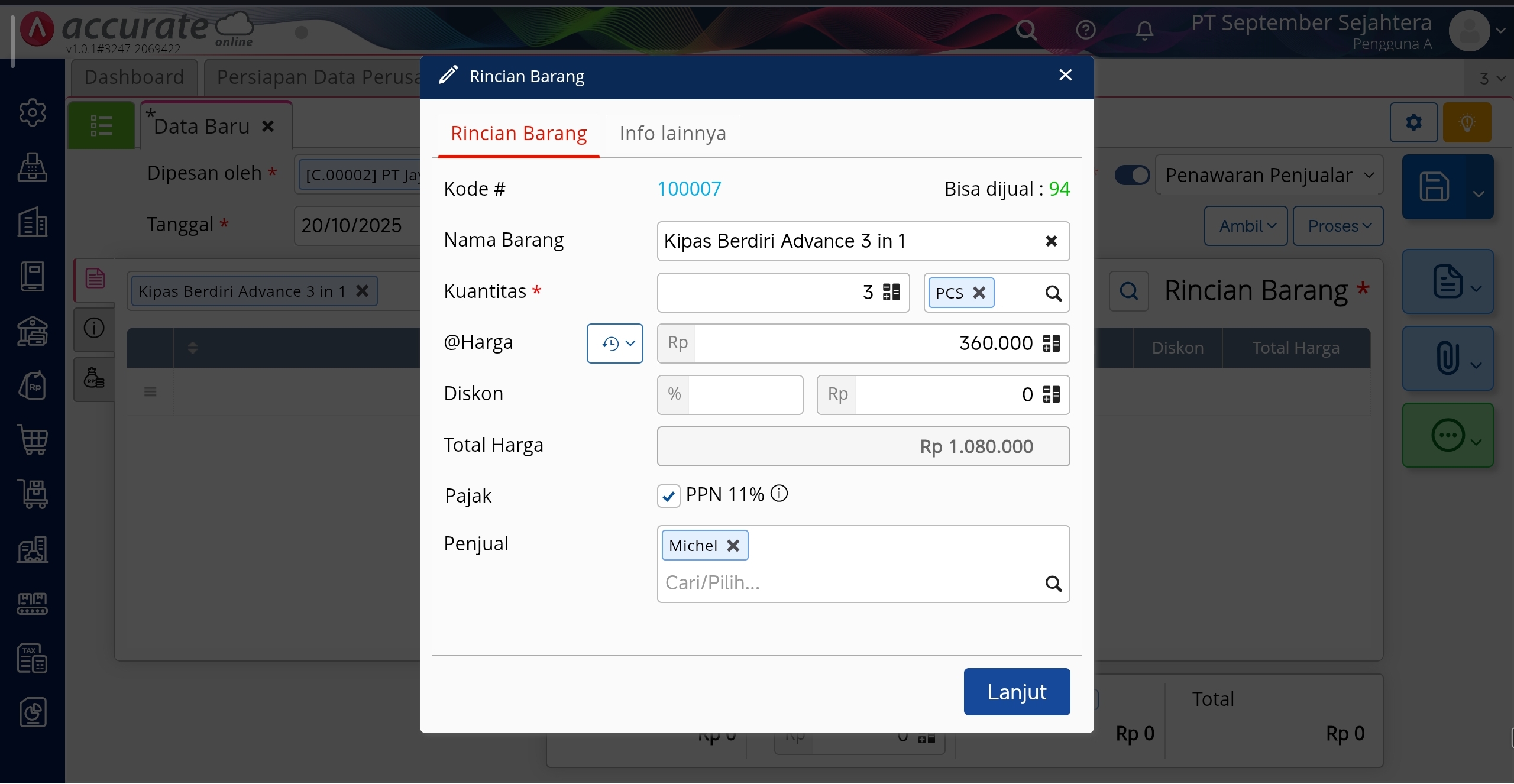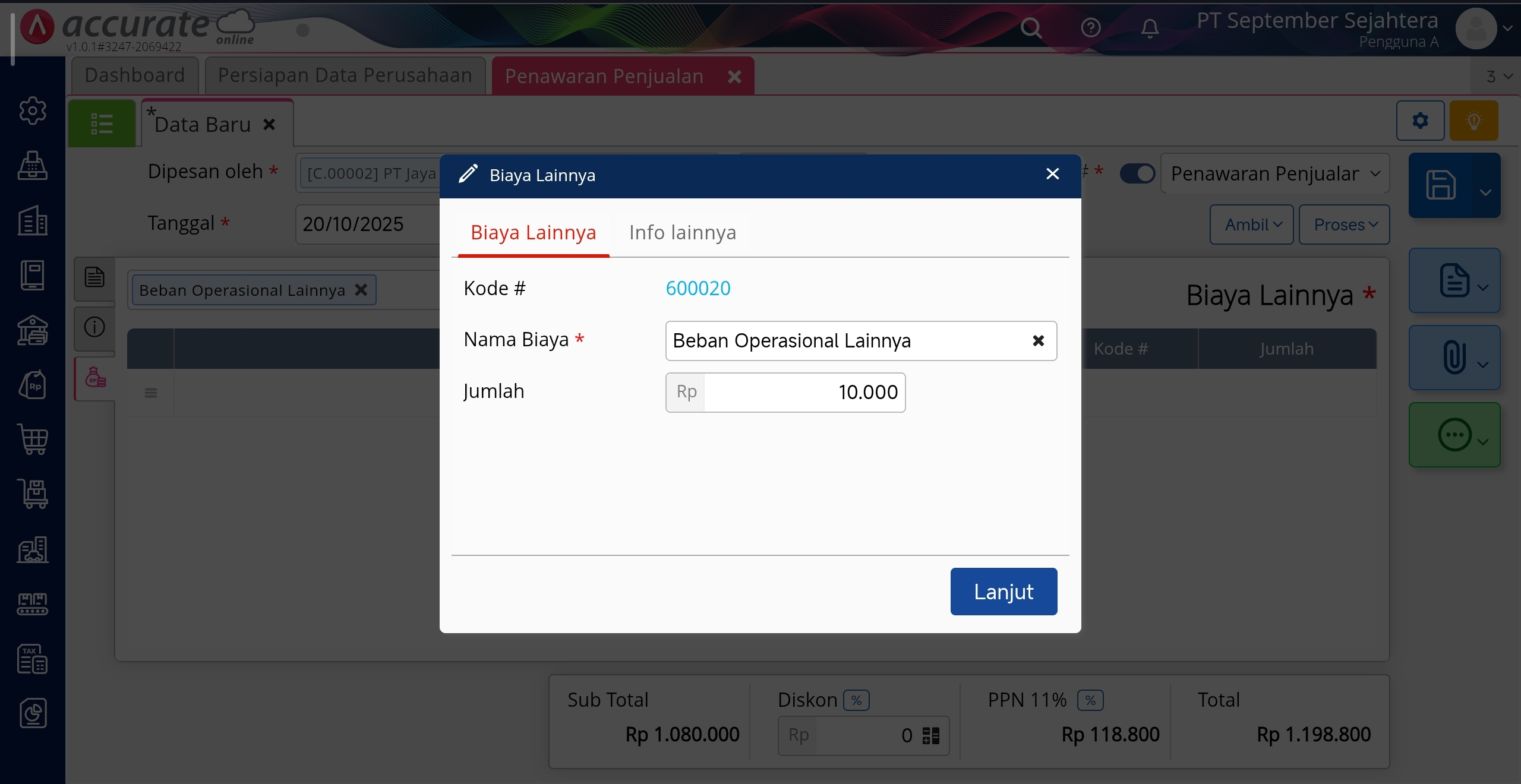 7. Lengkapi detail biaya yang akan dimasukan pada penawaran penjualan lalu klik Lanjut.