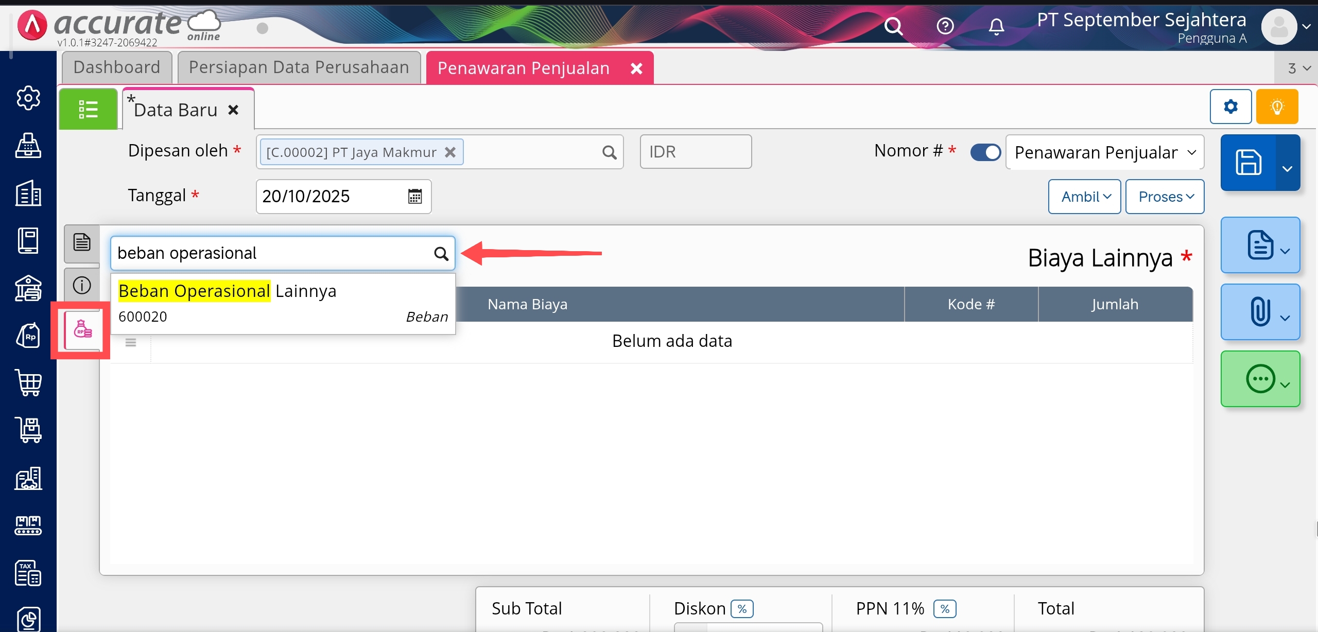 Menginput Biaya Lainnya pada Penawaran Penjualan