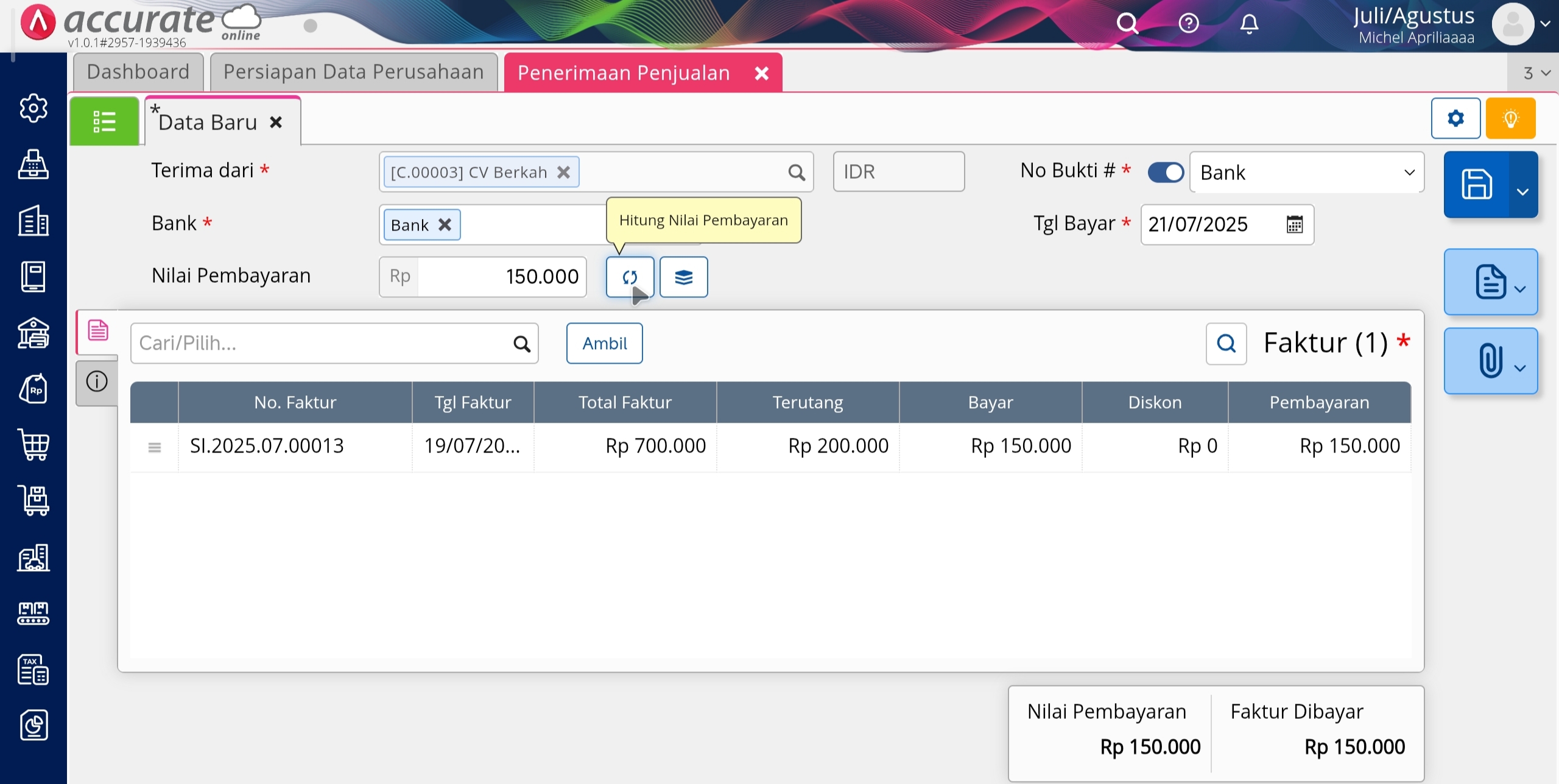 5. Klik tombol Hitung Nilai Pembayaran, lalu klik Simpan.