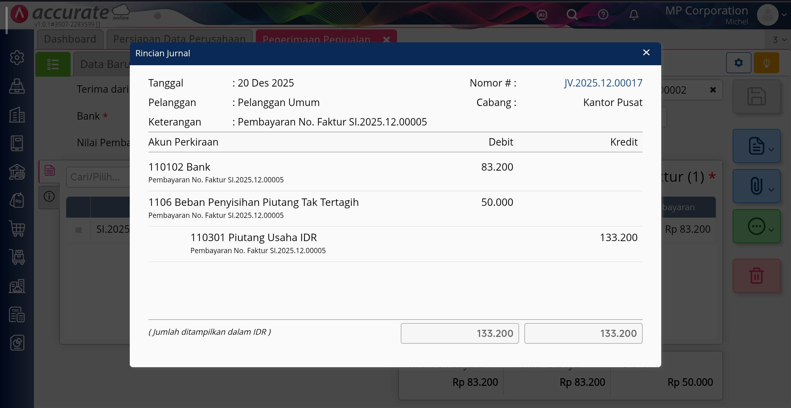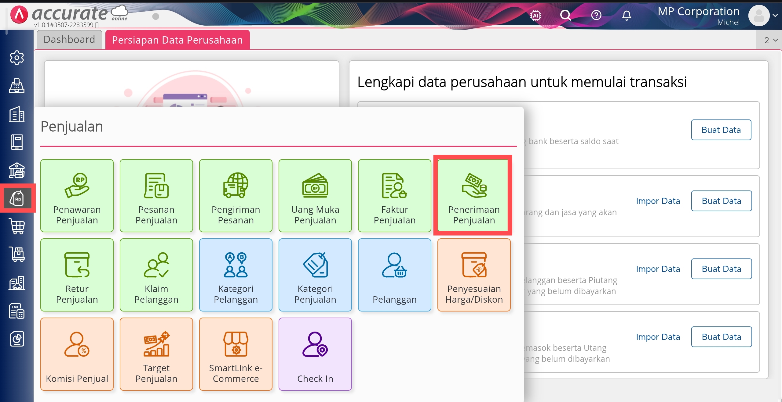 Penerimaan Penjualan di Menu Penjualan