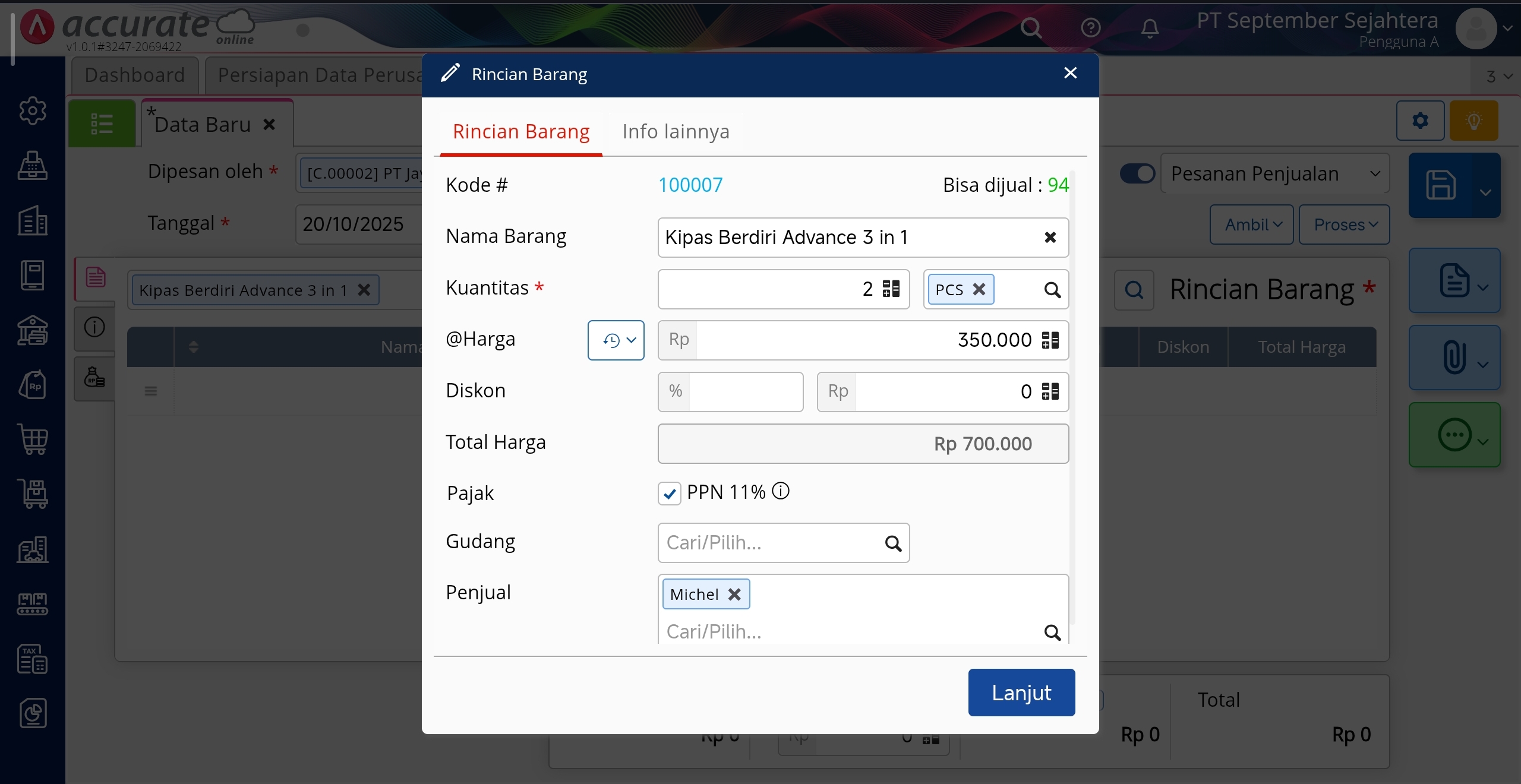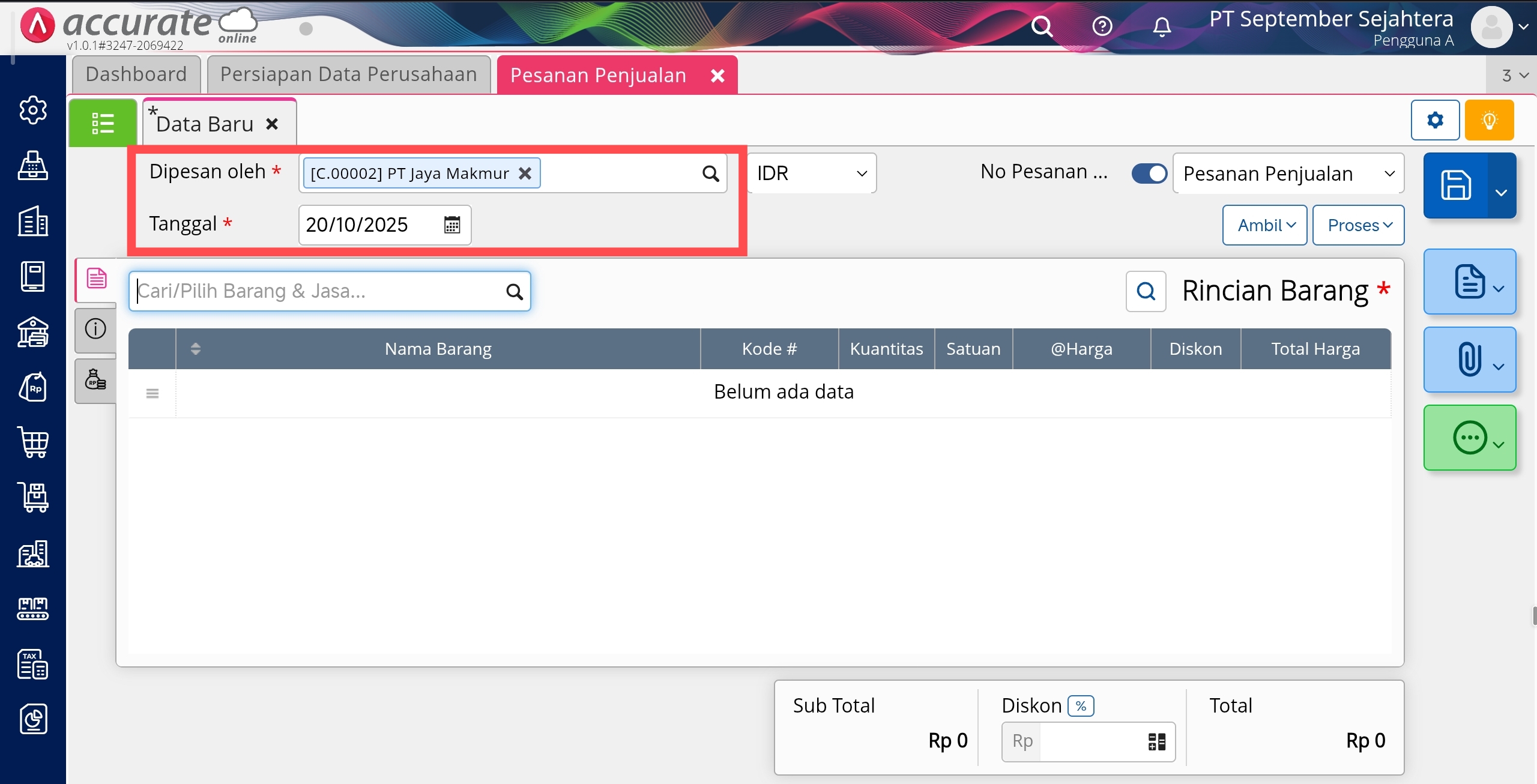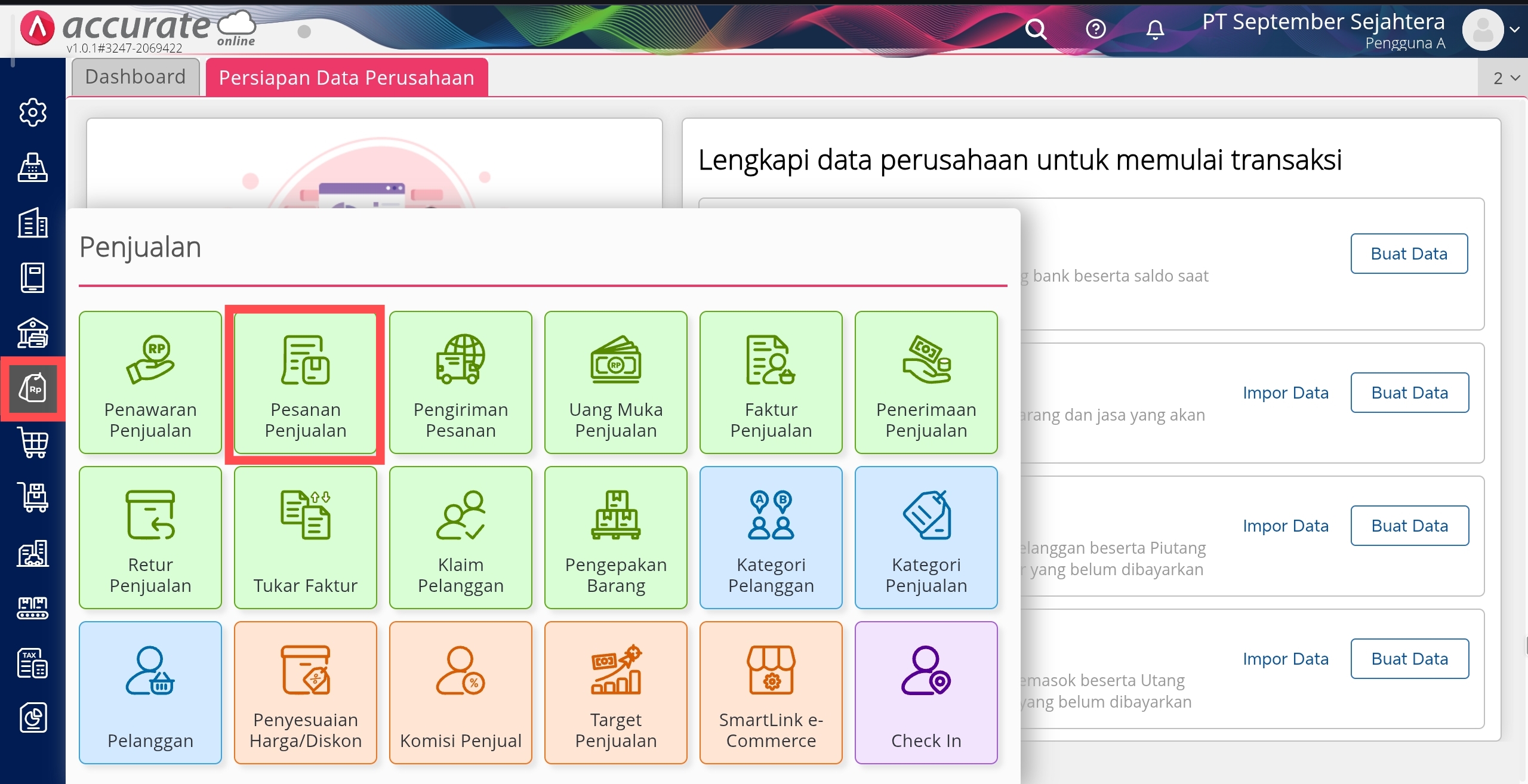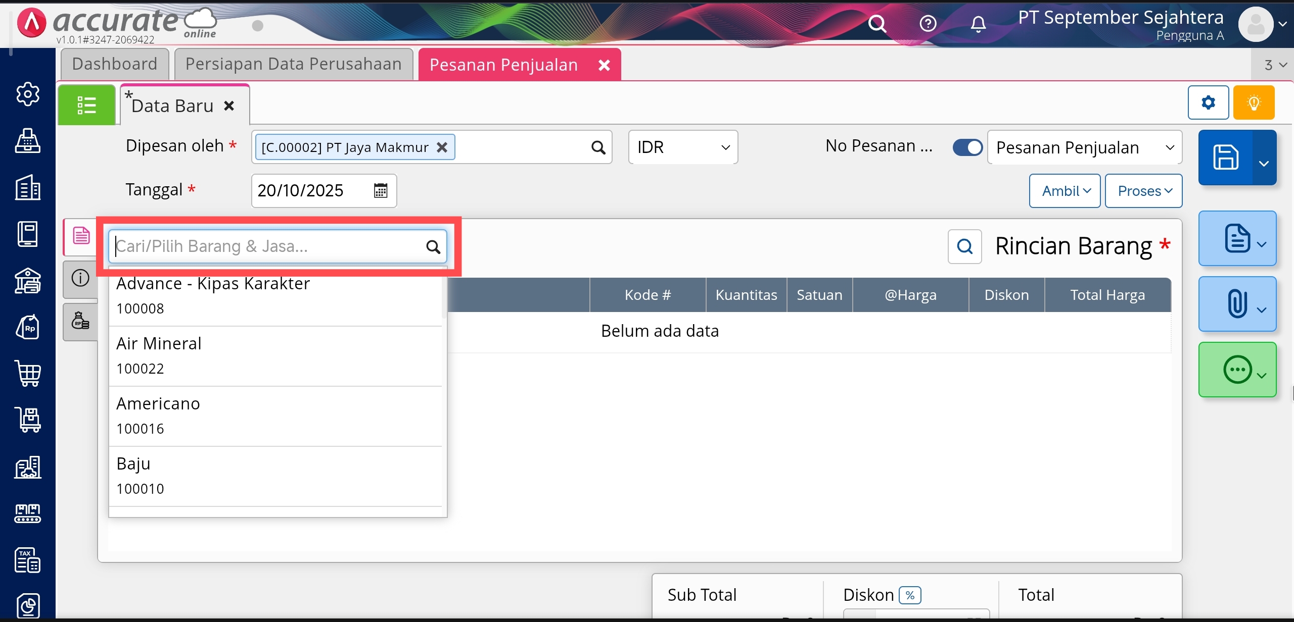 Untuk membuat pesanan penjualan di Accurate Online adalah sbb :