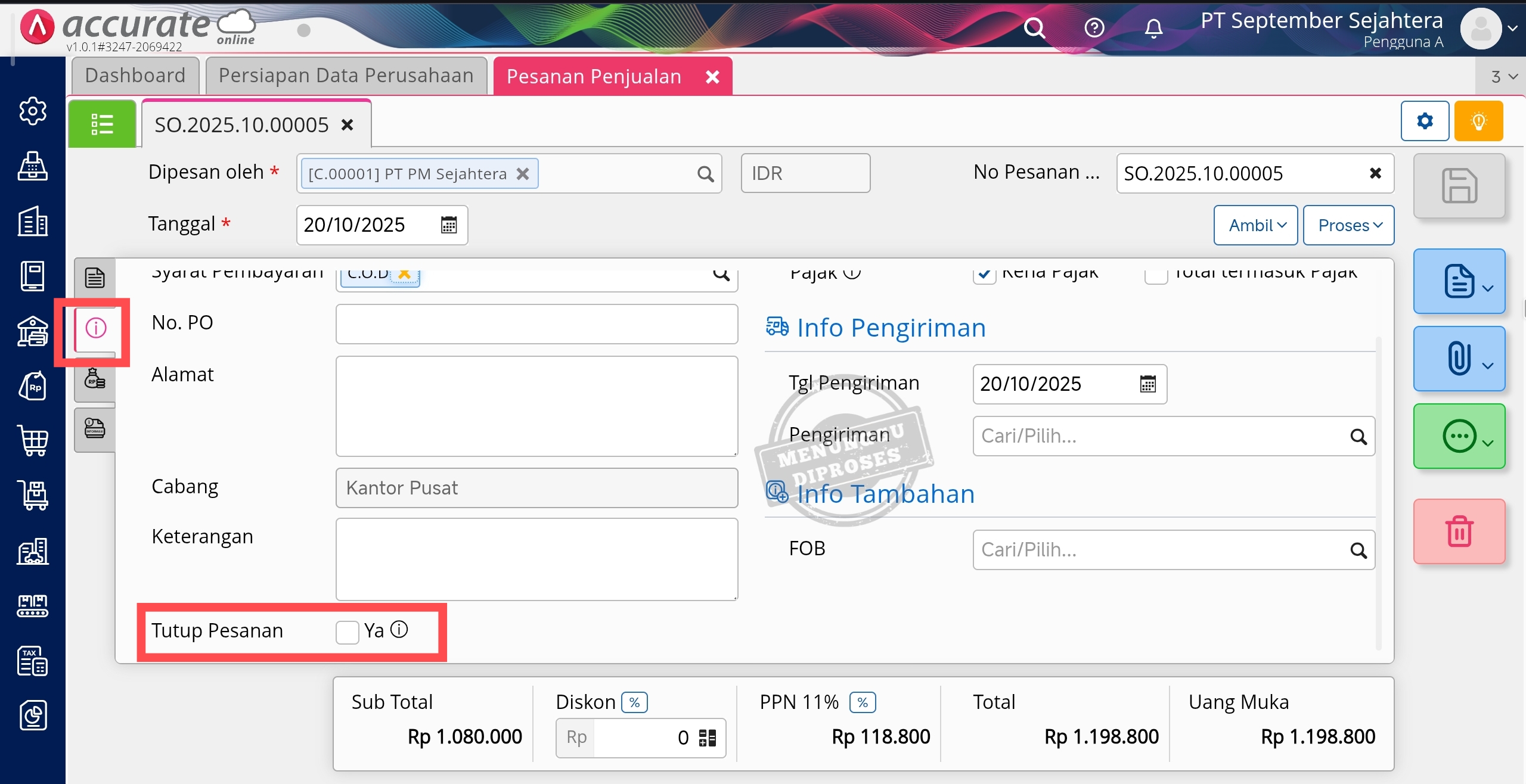 Menutup Pesanan Penjualan