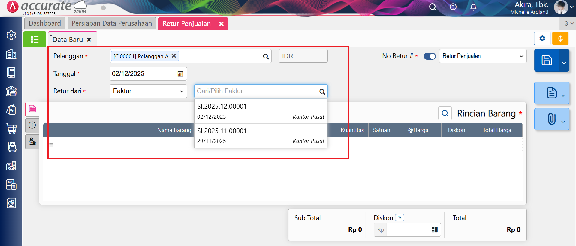 Membuat Retur Penjualan Dari Faktur Dengan Kuantitas Sebagian