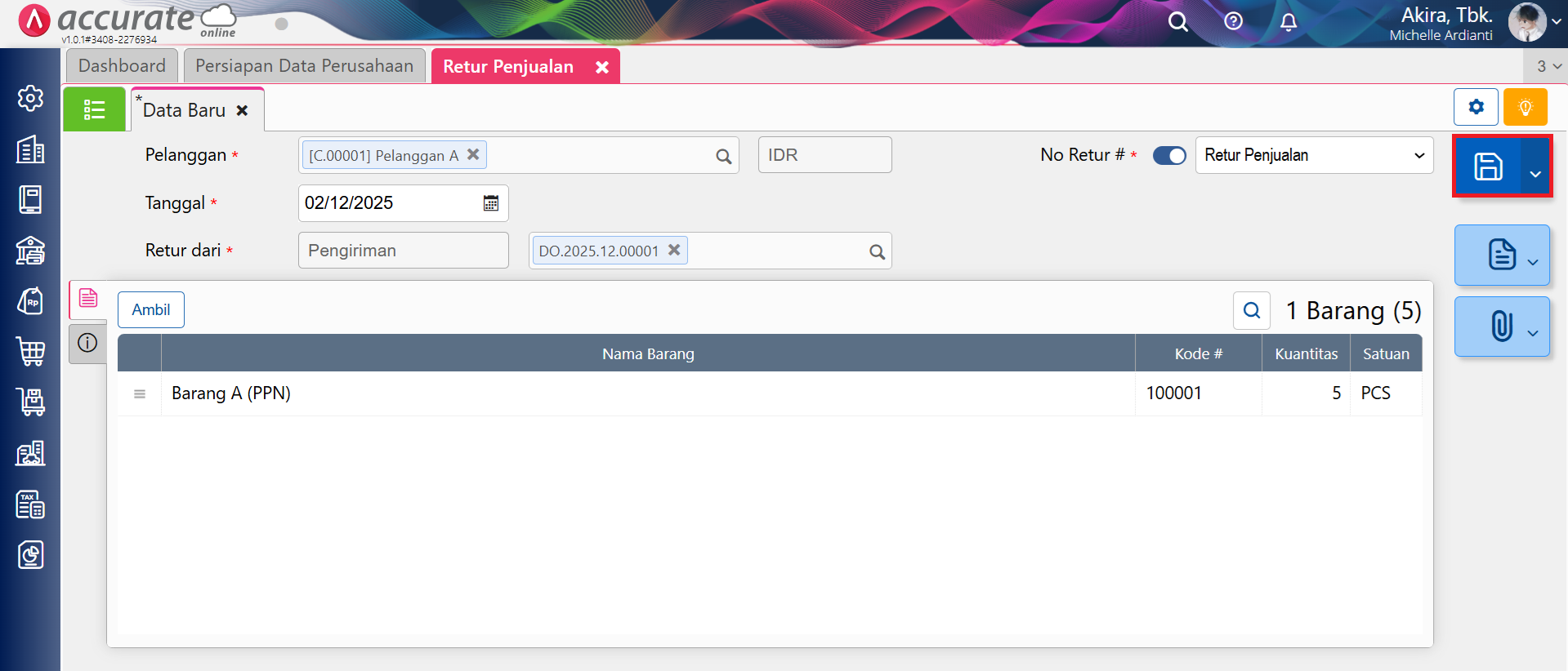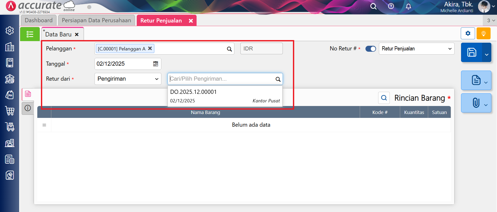 Membuat Retur Penjualan Dari Pengiriman Pesanan