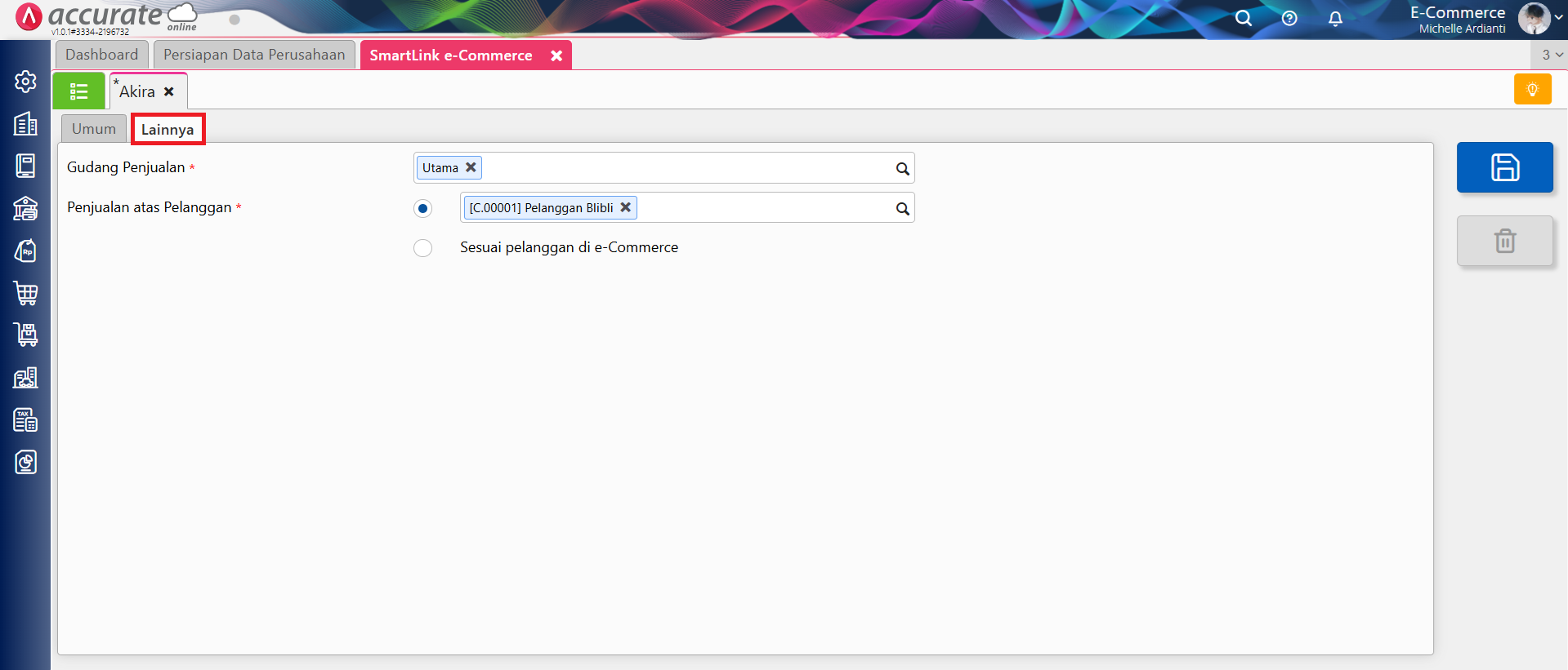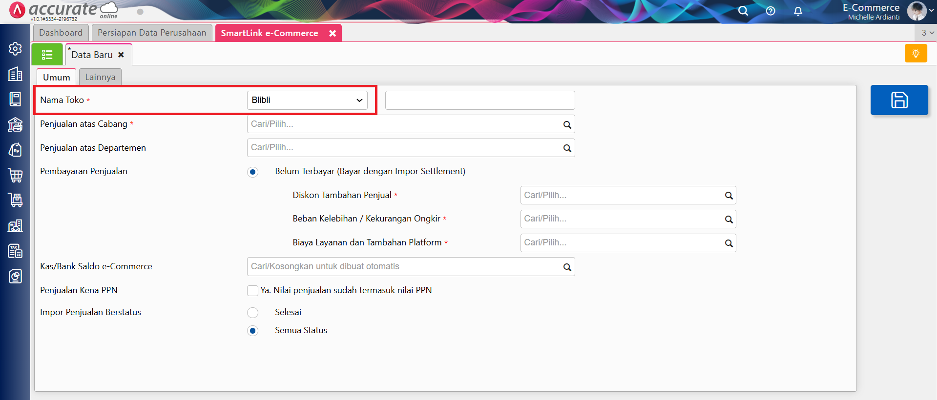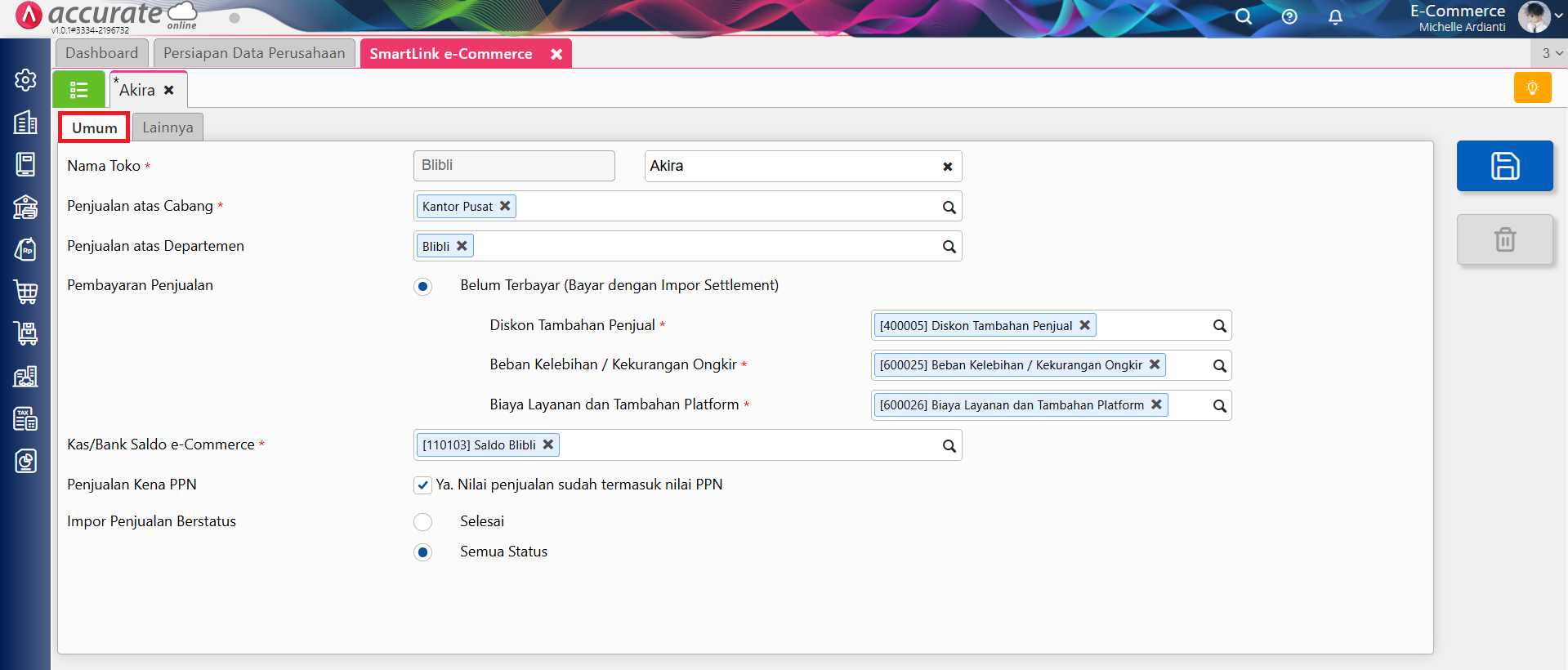 Berikut ini informasi pengaturan Smartlink e-Commerce Blibli pada Accurate Online: