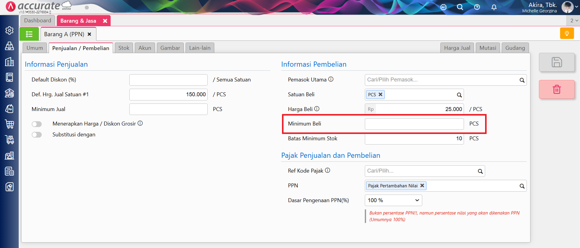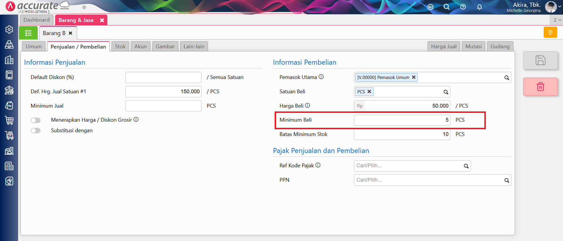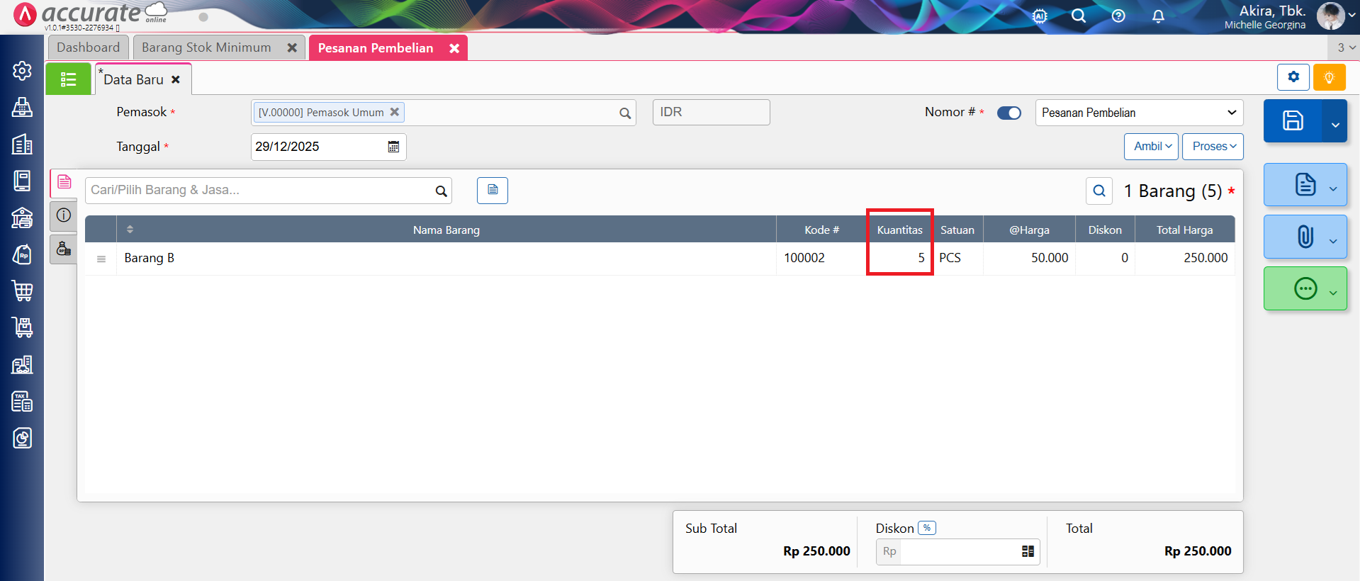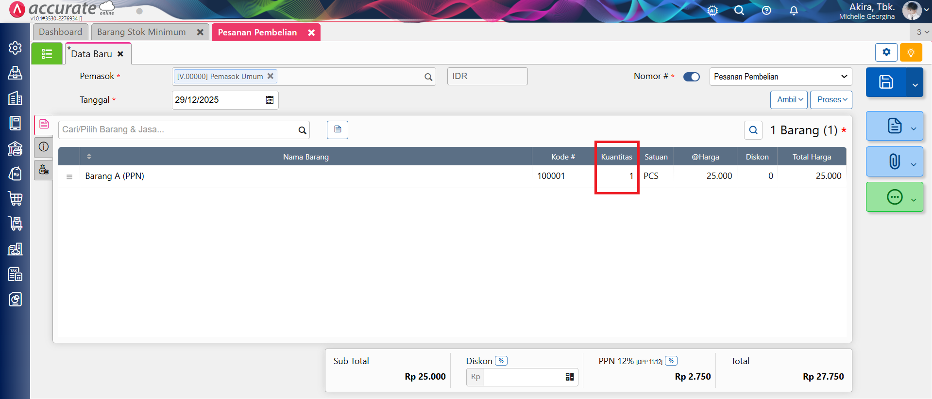 – Contoh pesanan pembelian barang diisi minimum beli