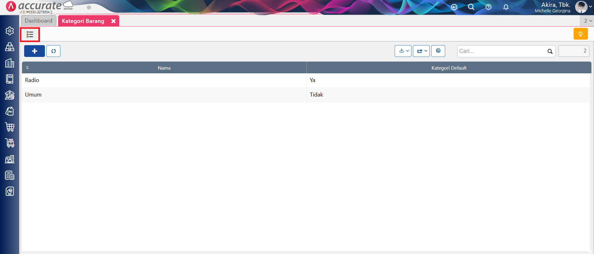 5. Untuk melihat daftar kategori barang yang telah Anda buat klik tombol yang diberi tanda merah.