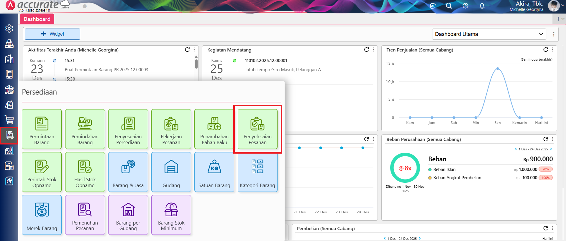 - Akses ke menu Persediaan | Penyelesaian Pesanan.