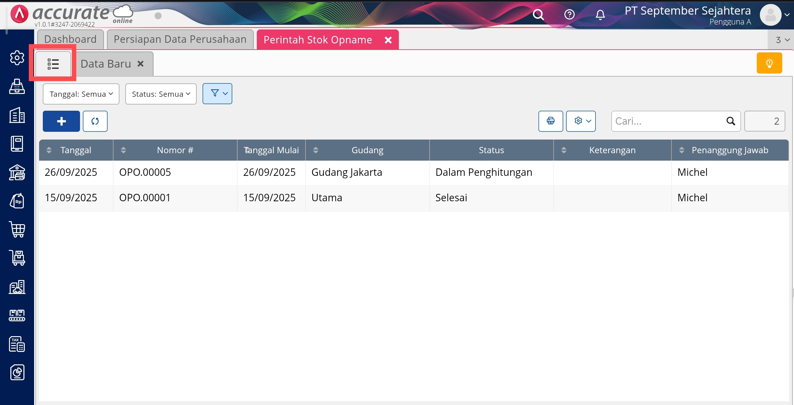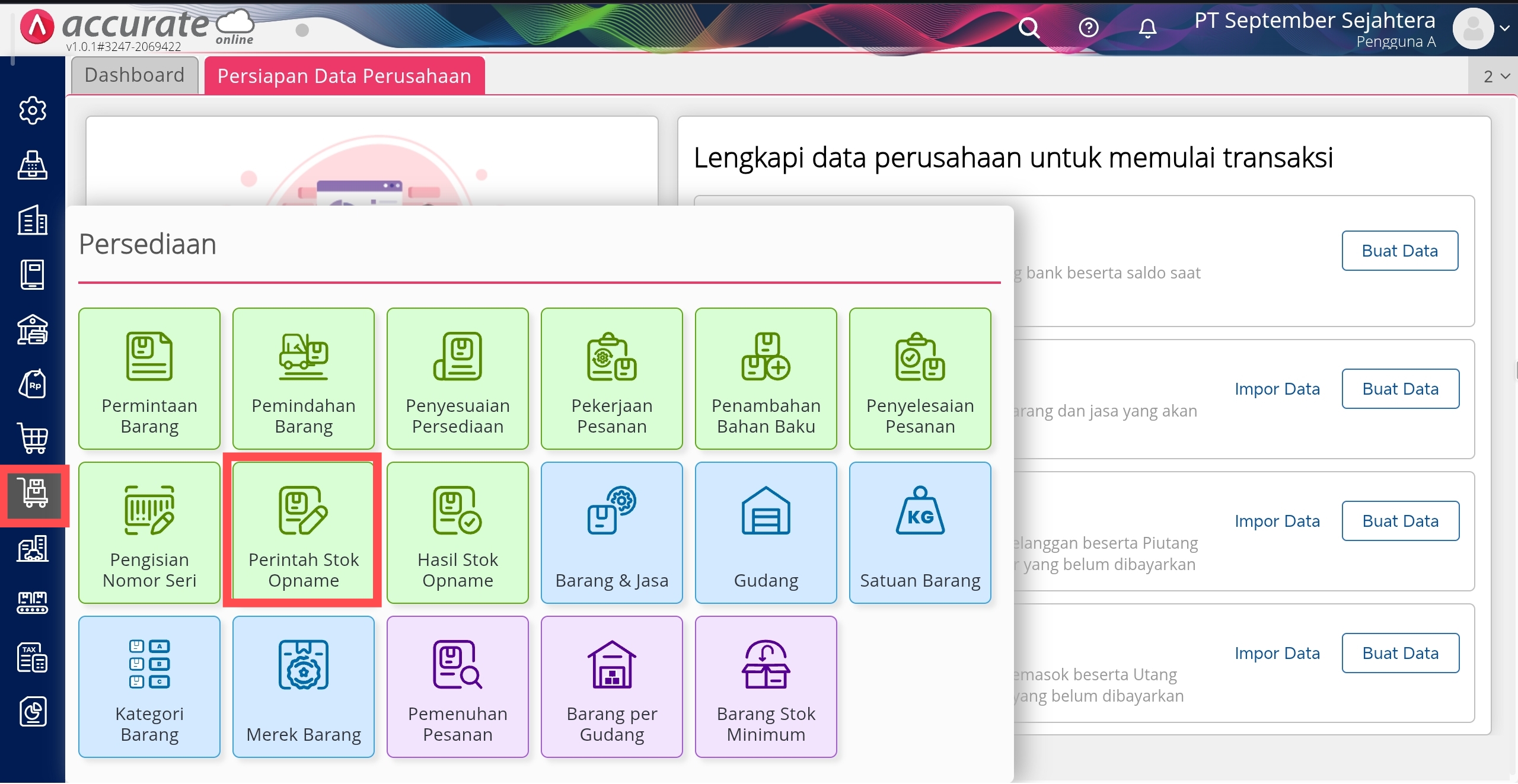 Buka PErintah Stok Opname di Menu Persediaan