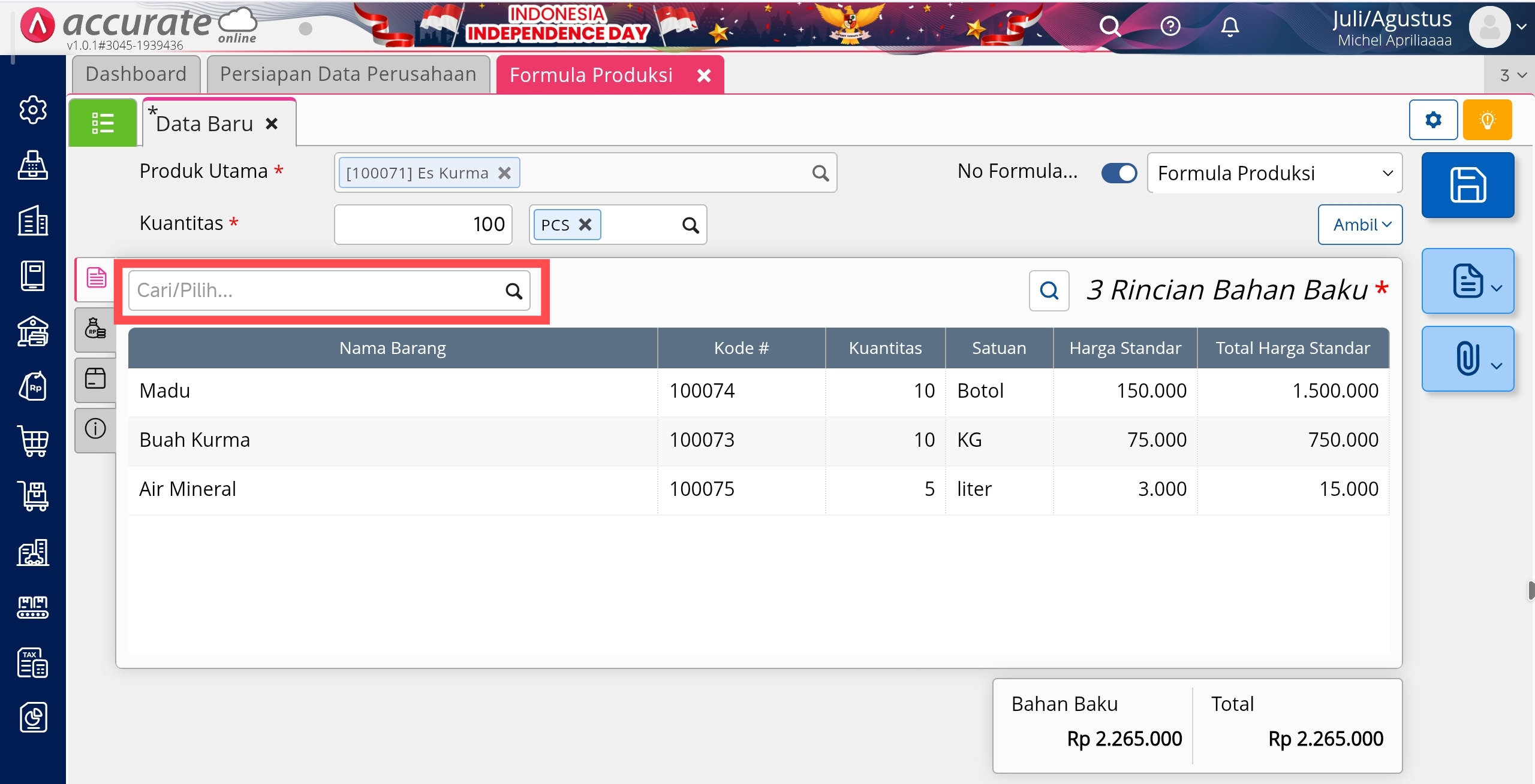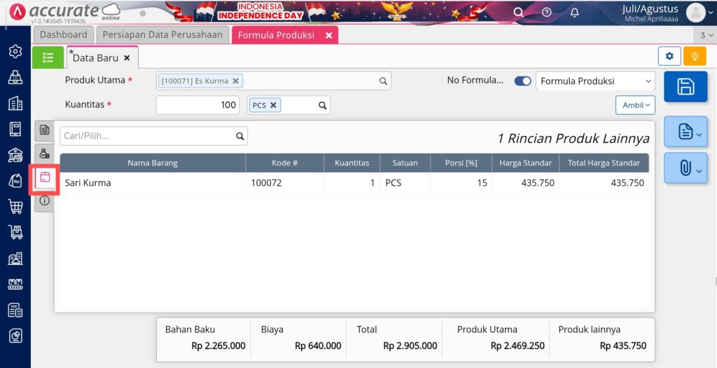 5. Simpan formula produksi dan selanjutnya anda bisa melanjutkan dengan membuat Rencana Produksi.