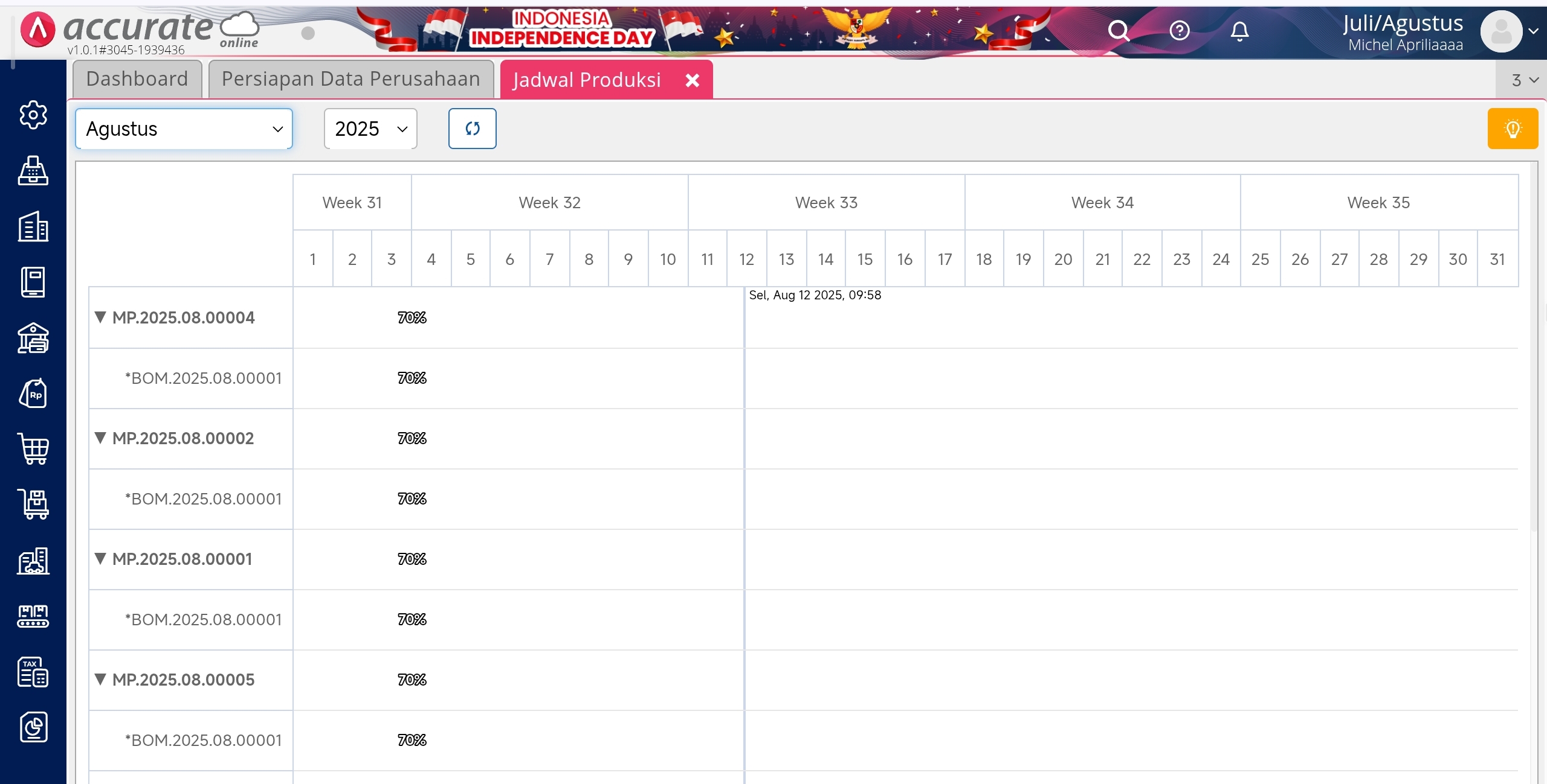 - Kolom bulan : menampilkan pilihan periode bulan dalam produksi.