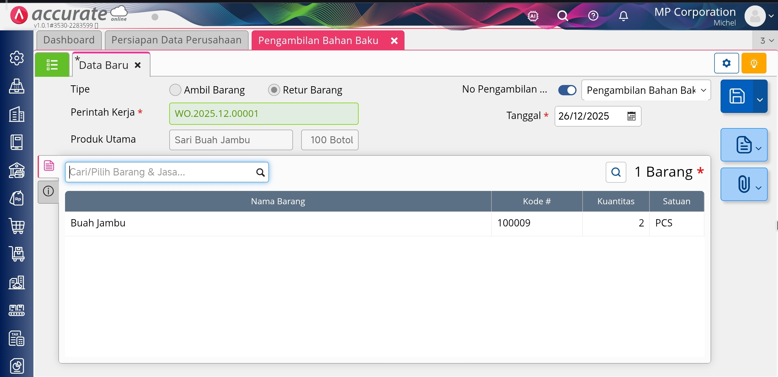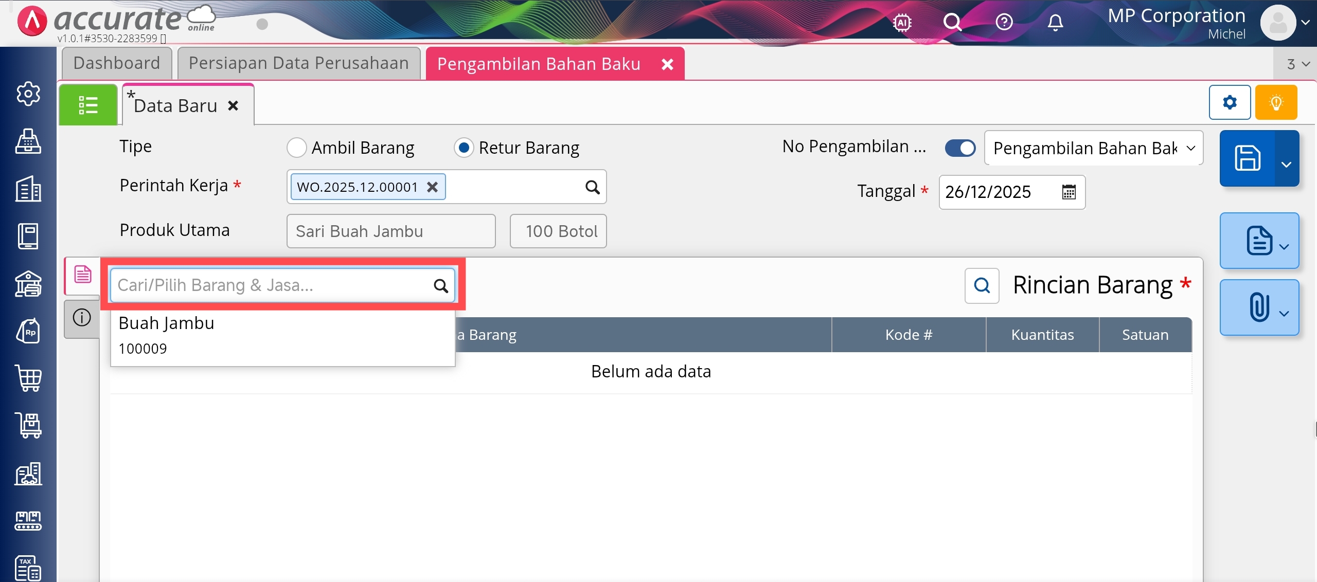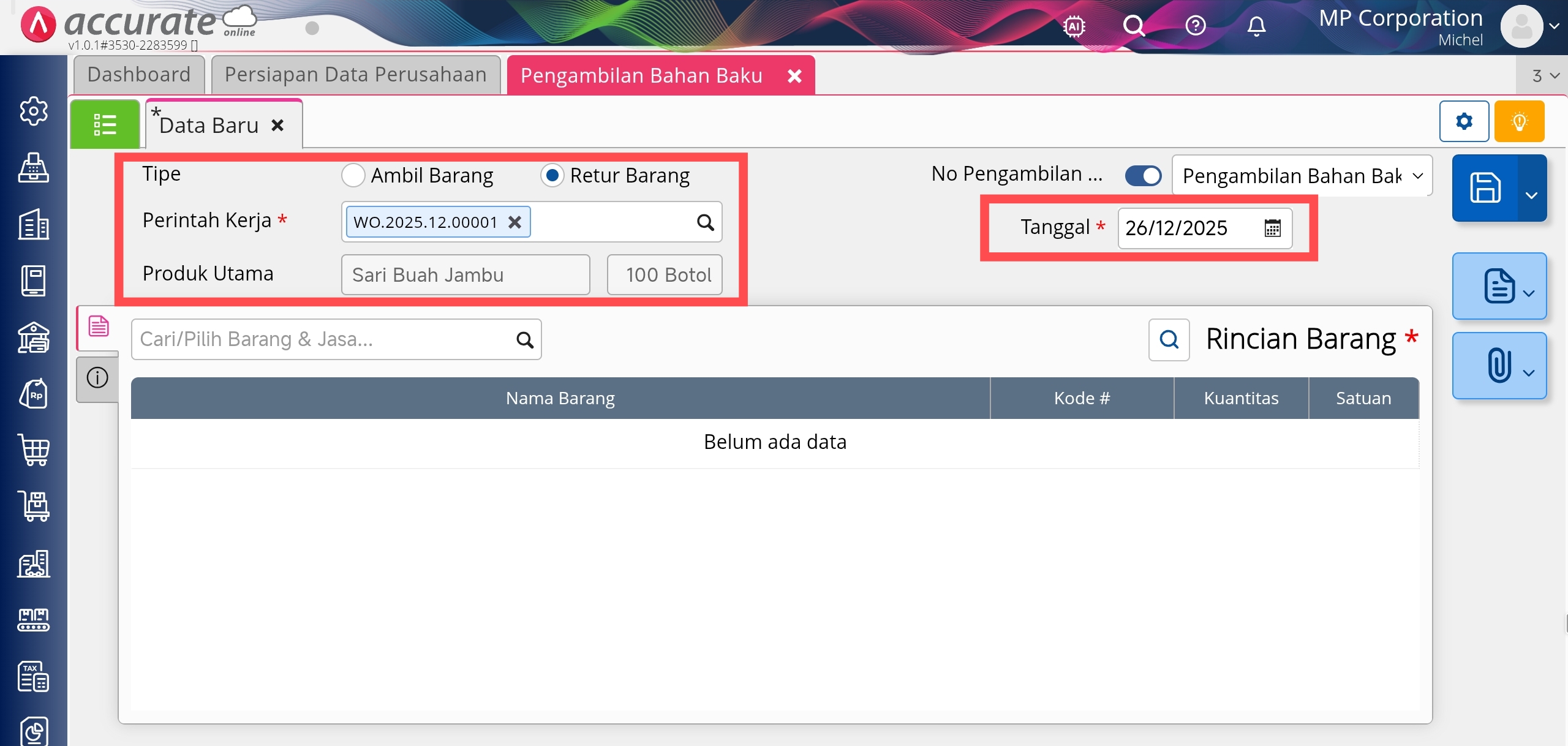 Melakukan Pengembalian Bahan Baku
