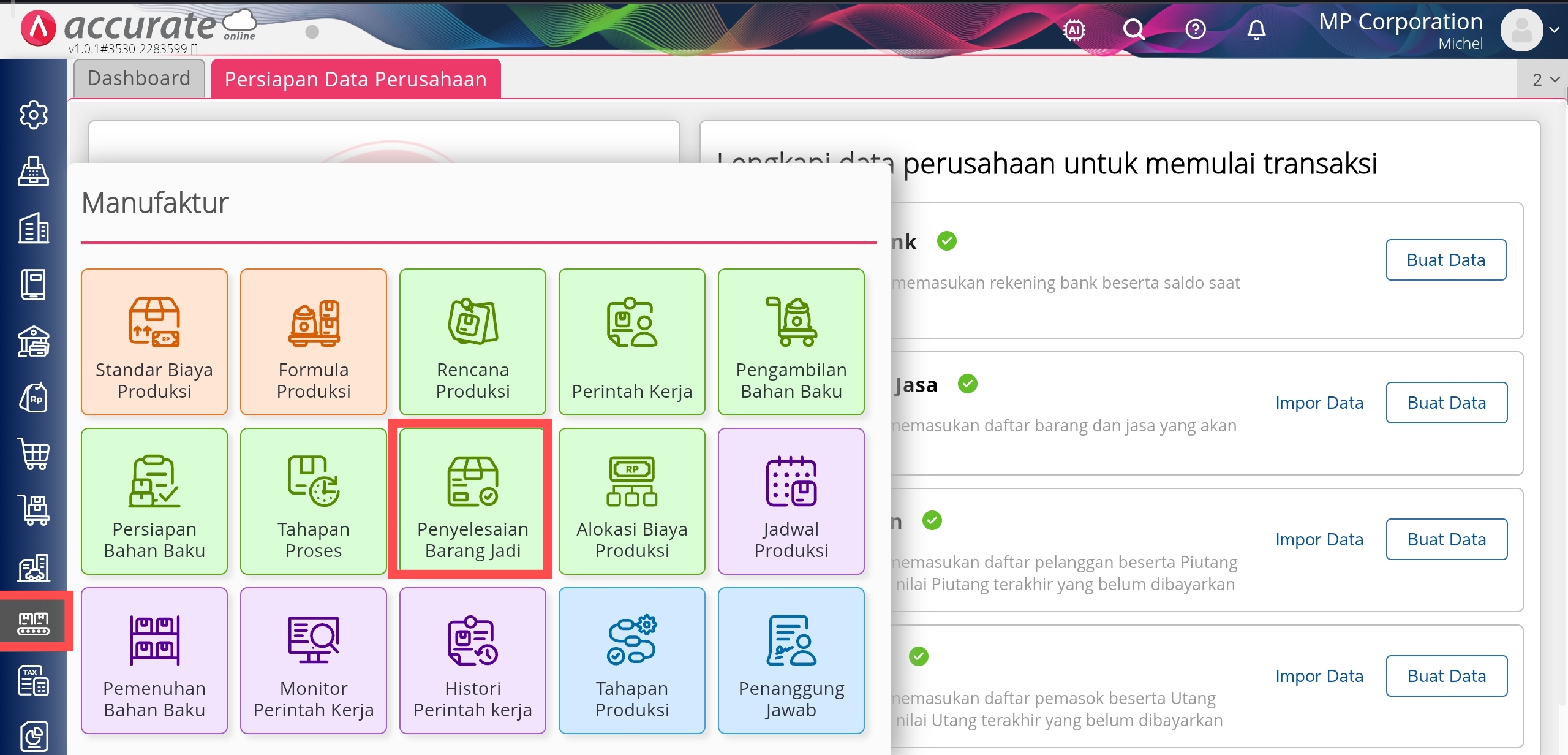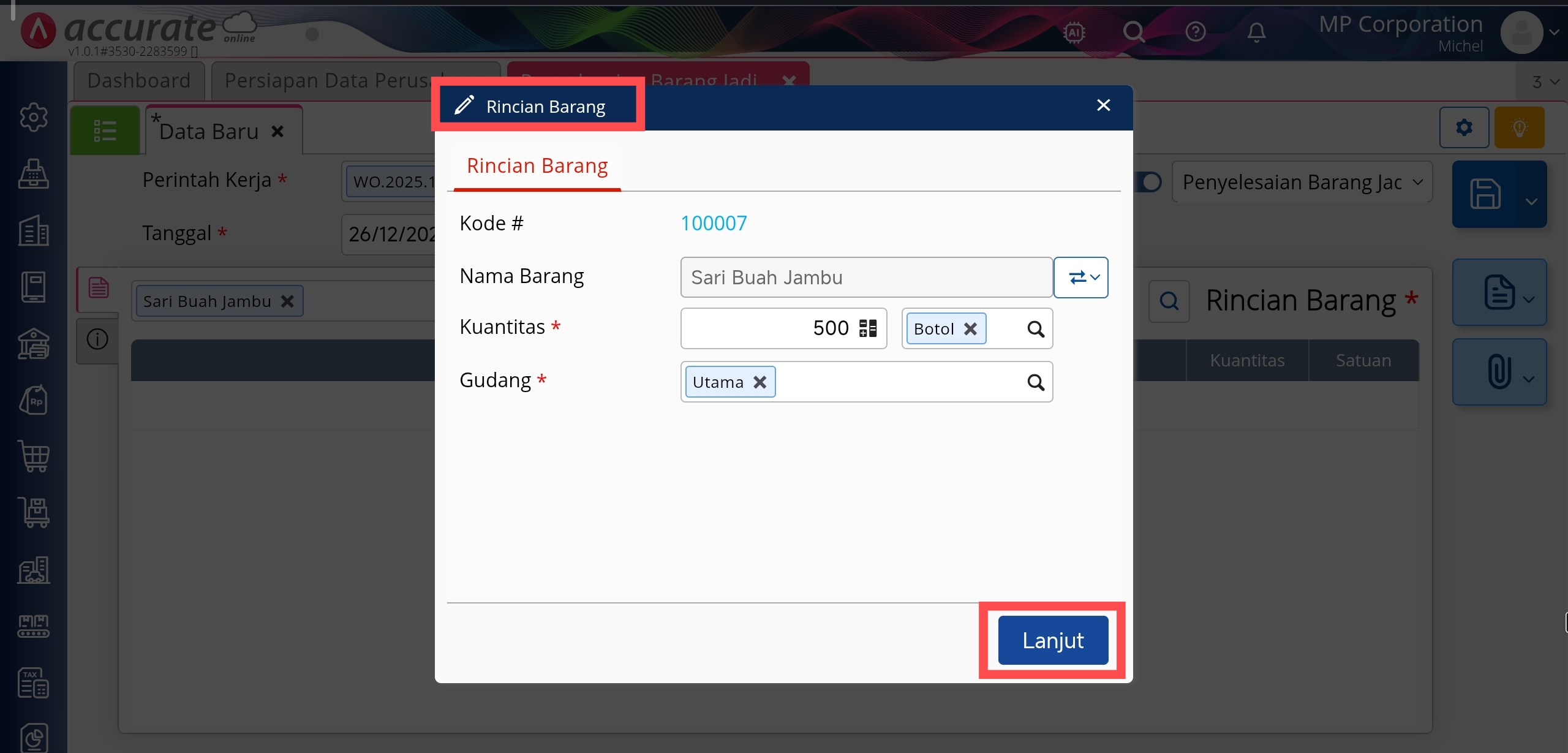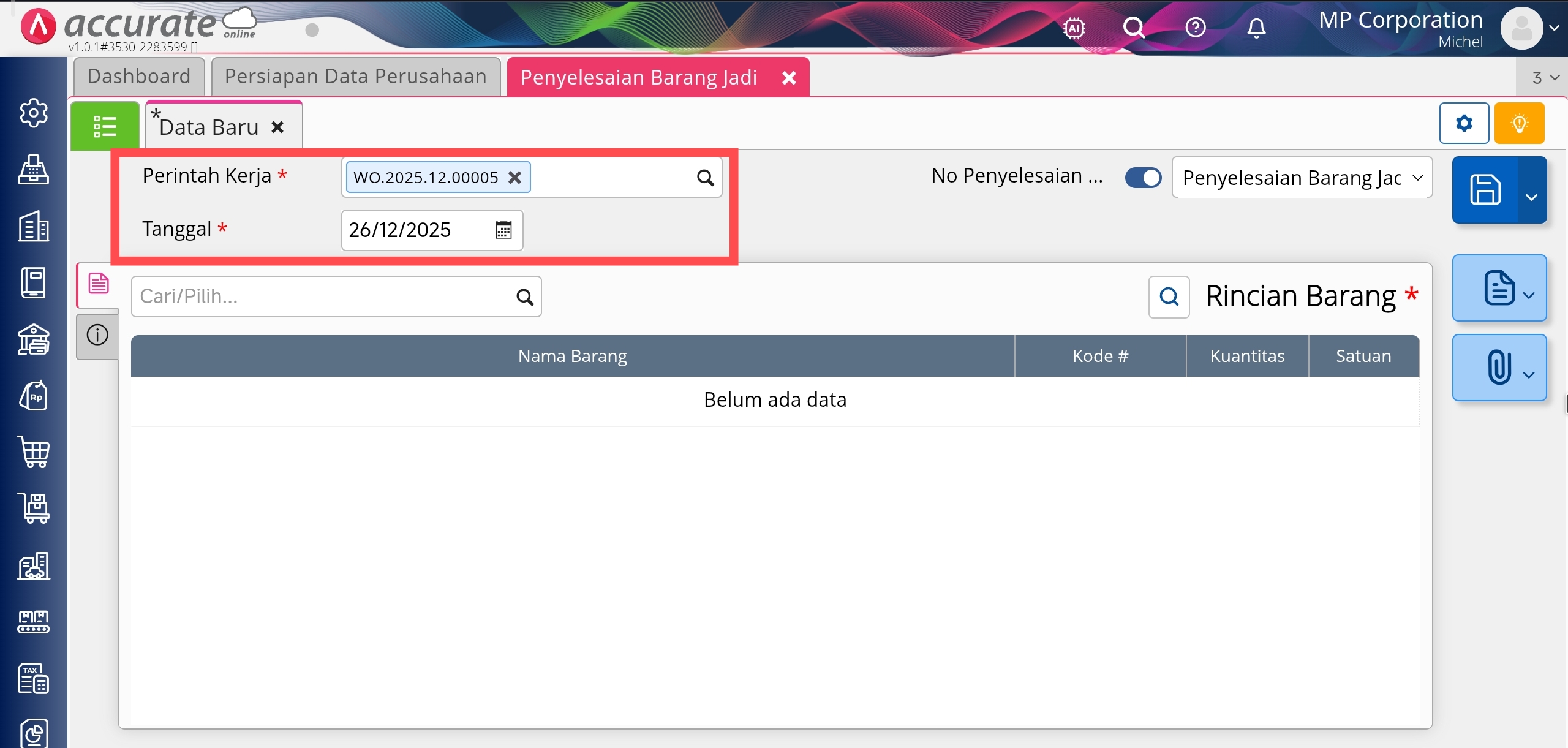 Penyelesaian Barang Jadi di menu Manufaktur