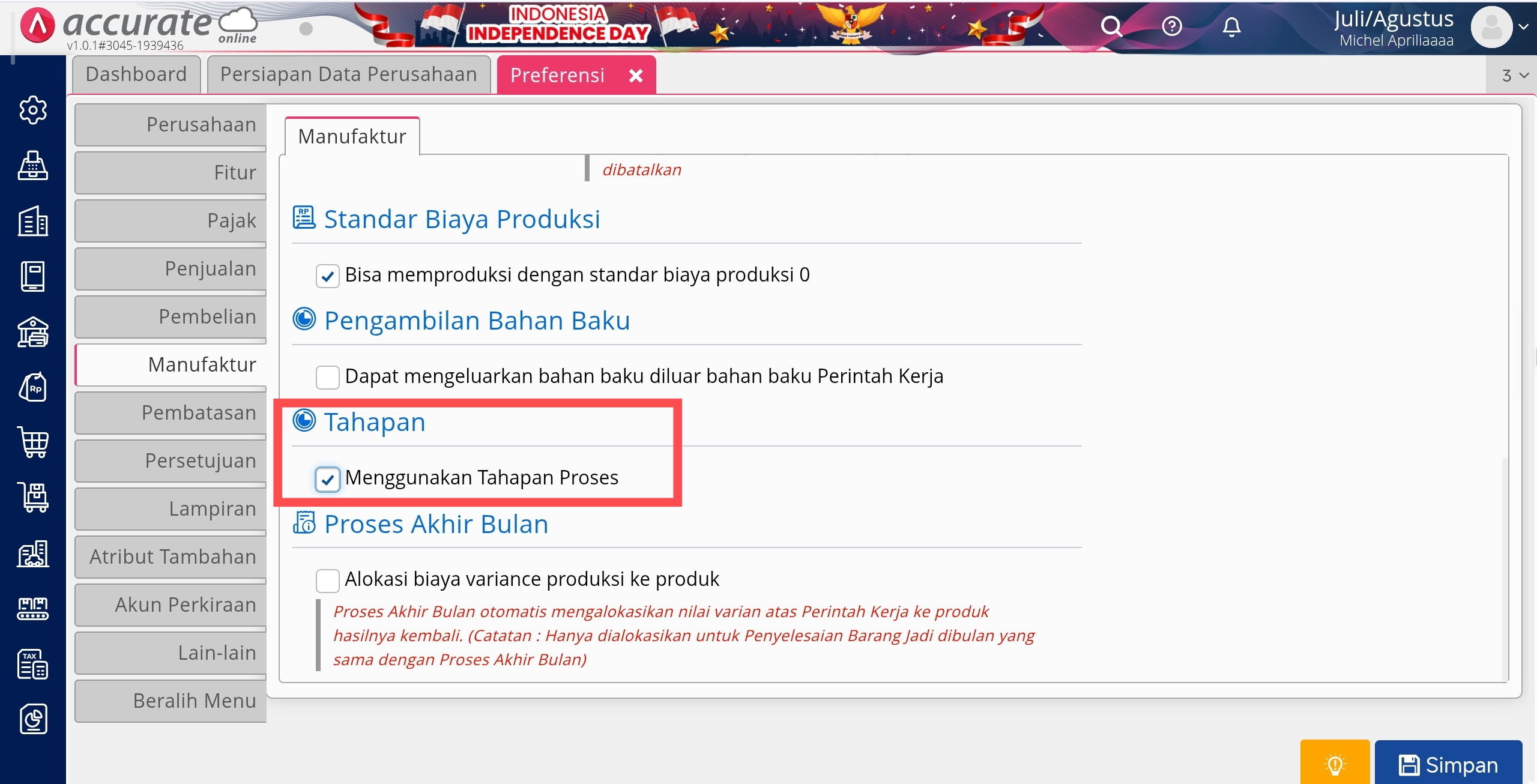Mengaktifkan Fitur Tahapan Proses