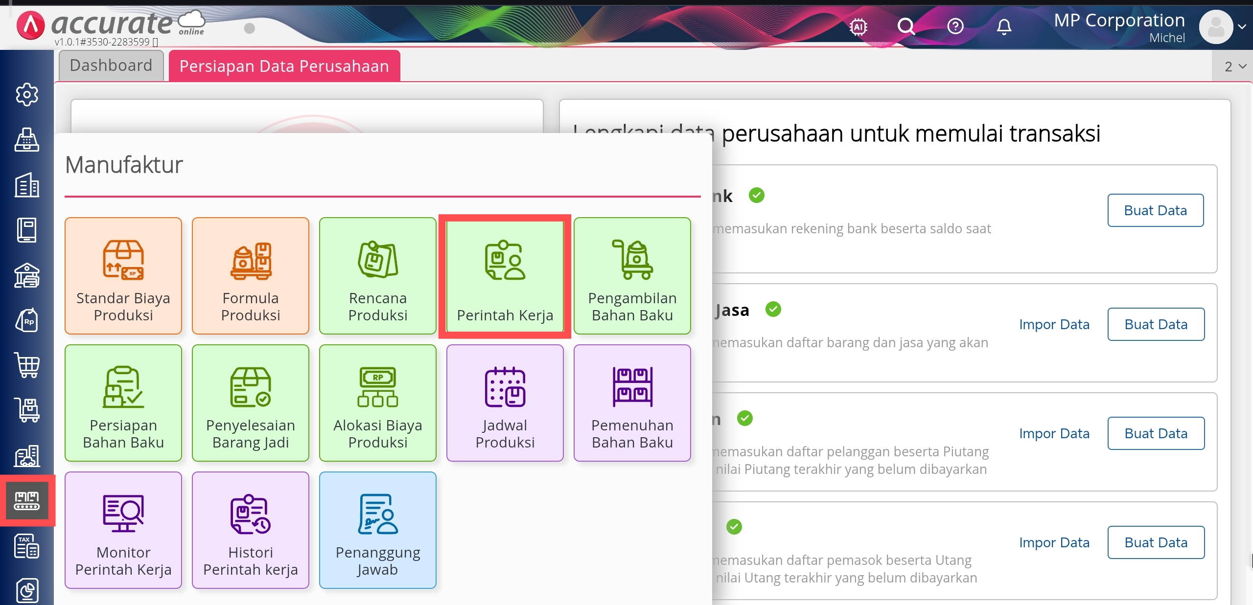 Berikut ini langkah-langkah untuk membuat perintah kerja dari Jadwal Produksi :