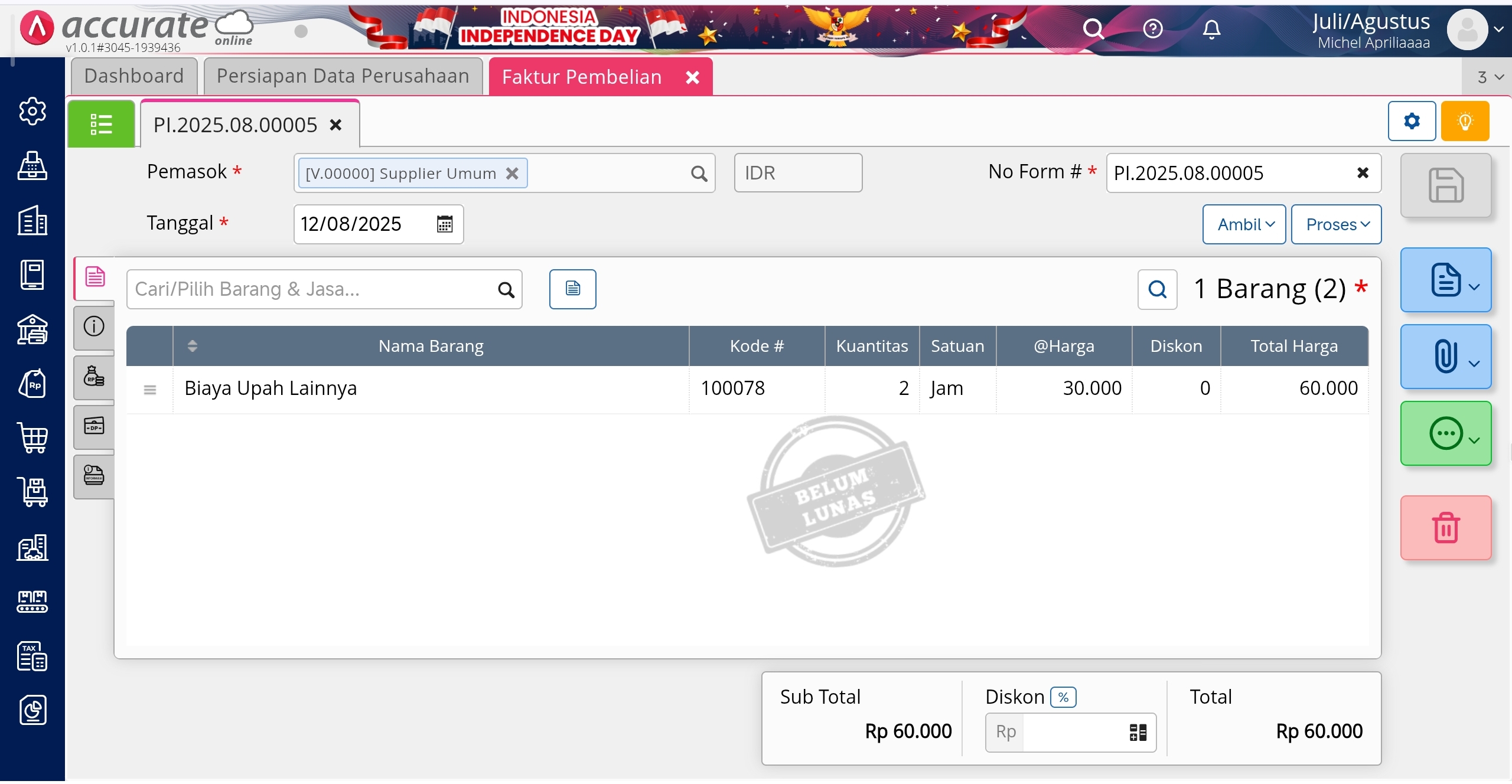 1. Pastikan anda telah menentukan biaya-biaya produksi yang akan di-subkon pada Formula produksinya, seperti panduan disini.