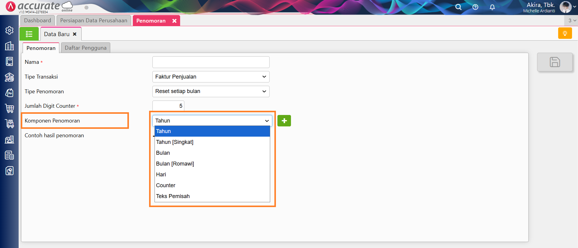Cara membuat penomoran otomatis pada data usaha Accurate Online adalah sebagai berikut :