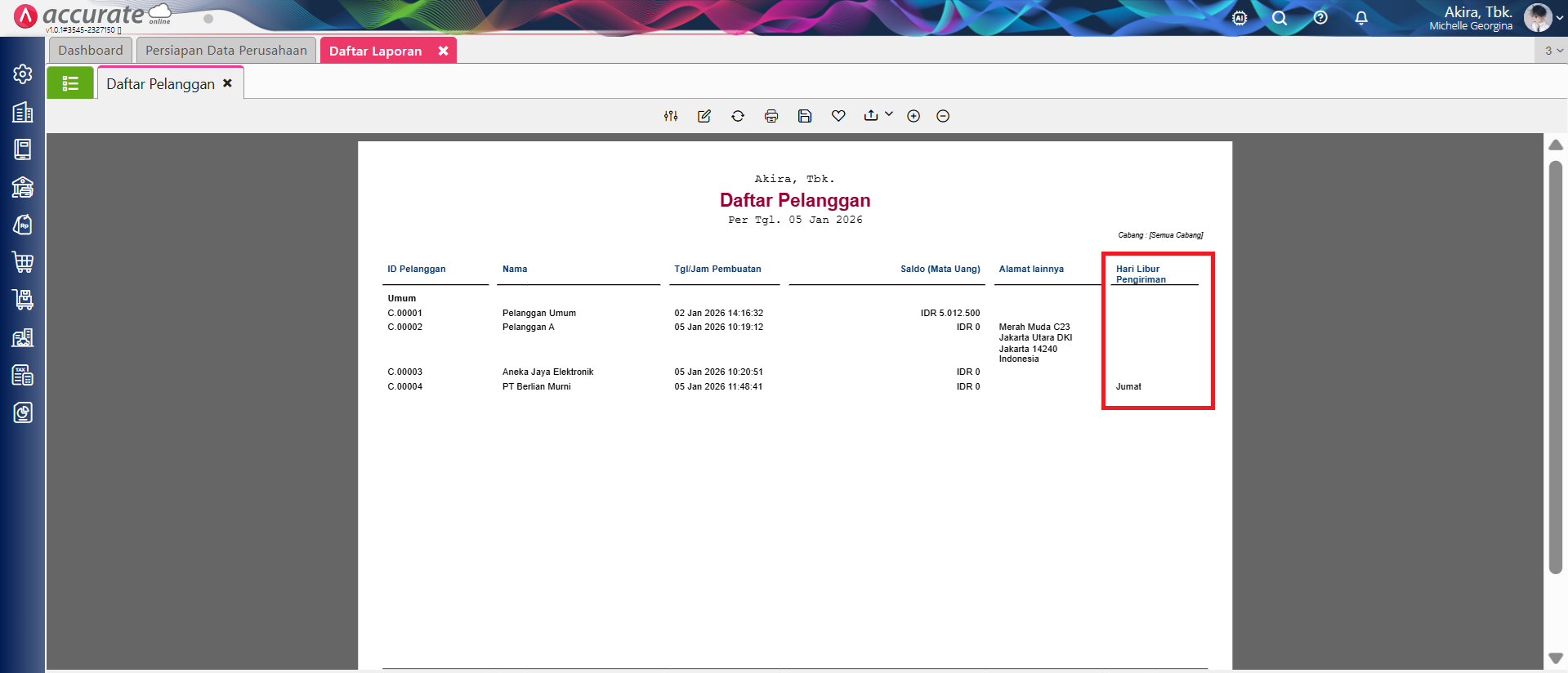 Laporan Daftar Pelanggan dengan menampilkan atribut tambahan pelanggan
