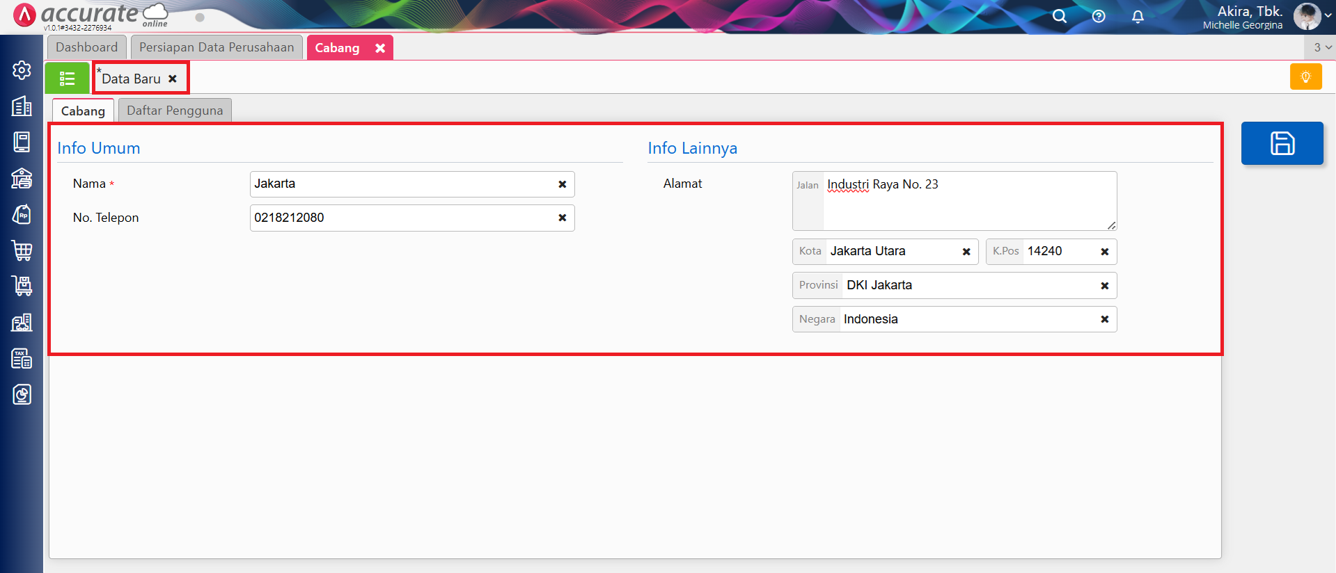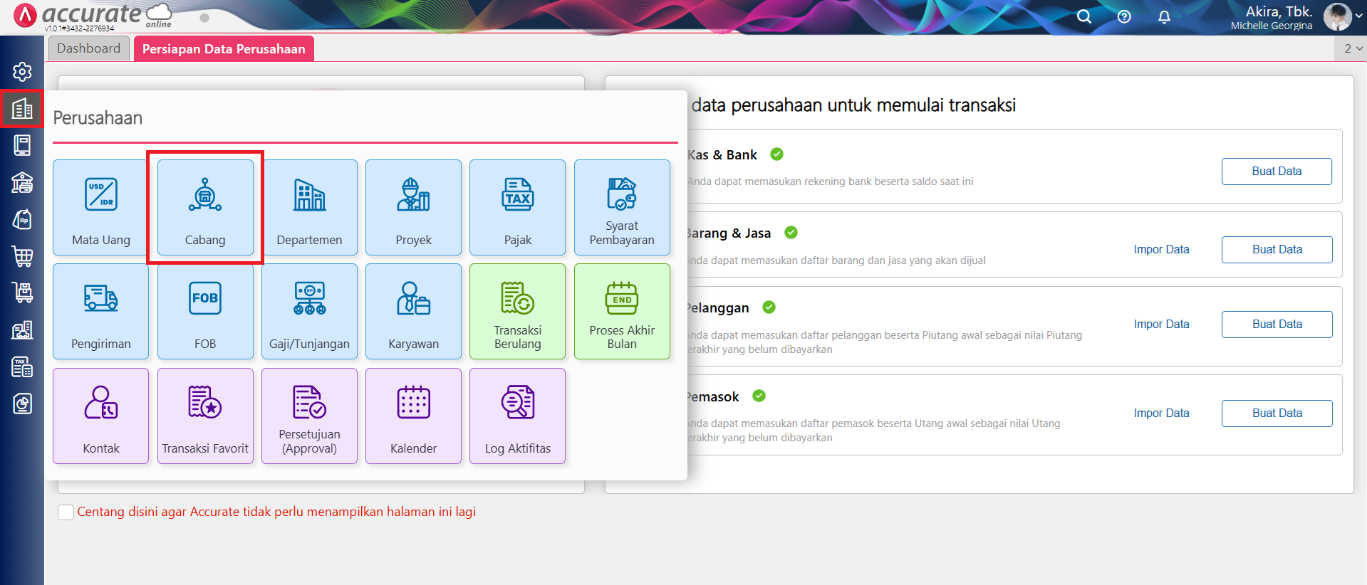Cara menggunakan fitur Cabang pada data usaha Accurate Online: