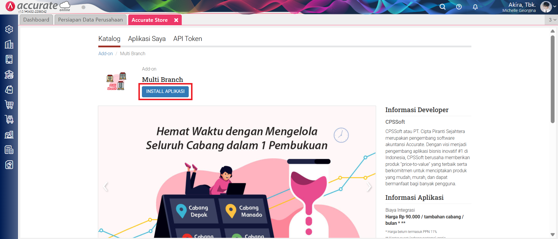 - Ke menu Pengaturan | Accurate Store, lalu install fitur tambahan Cabang (Multi Branch).