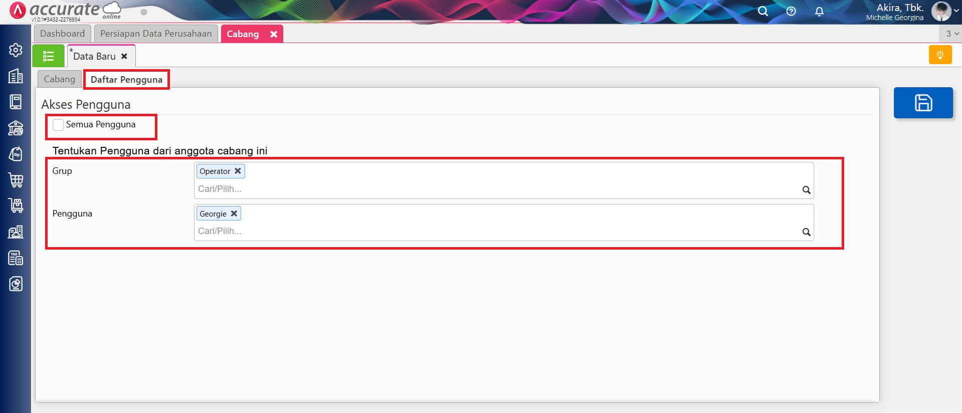 Pengaturan Akses Pengguna Pada Cabang