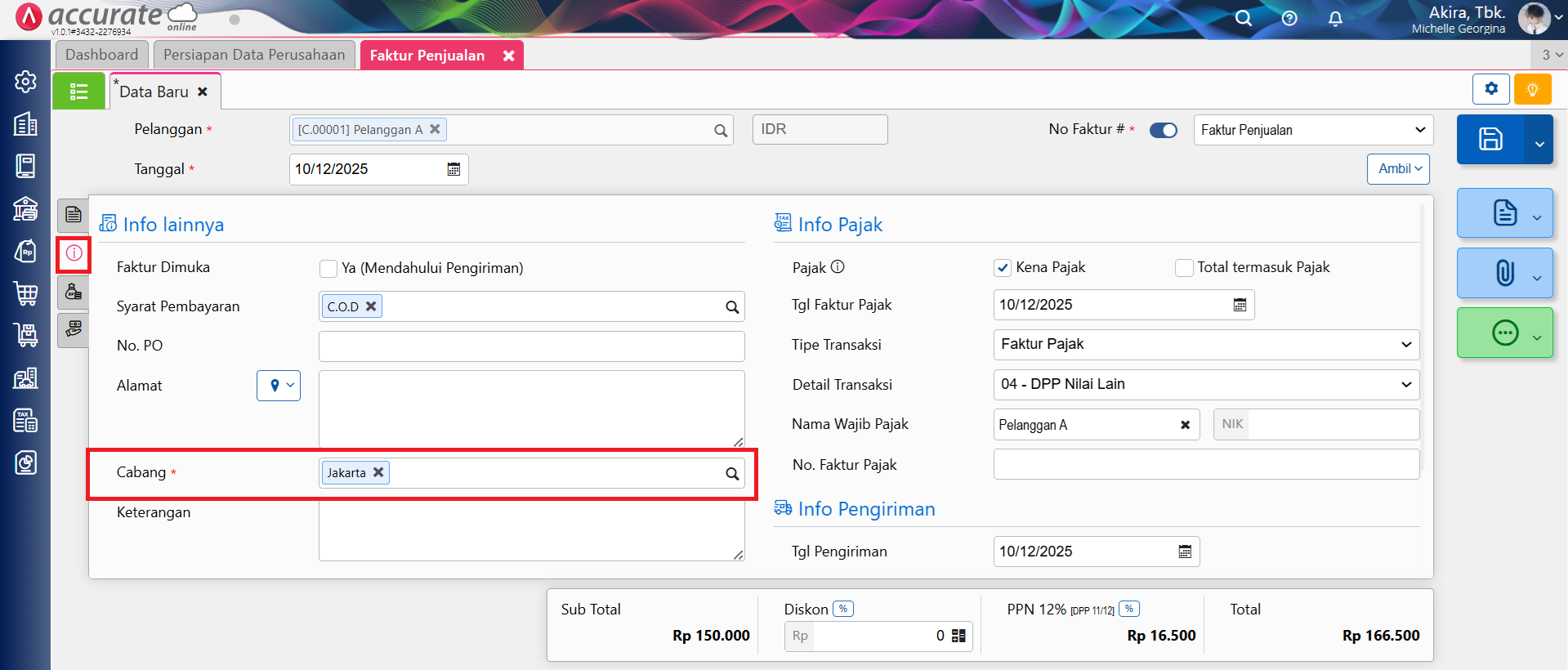 Menentukan Cabang pada Data di Accurate Online