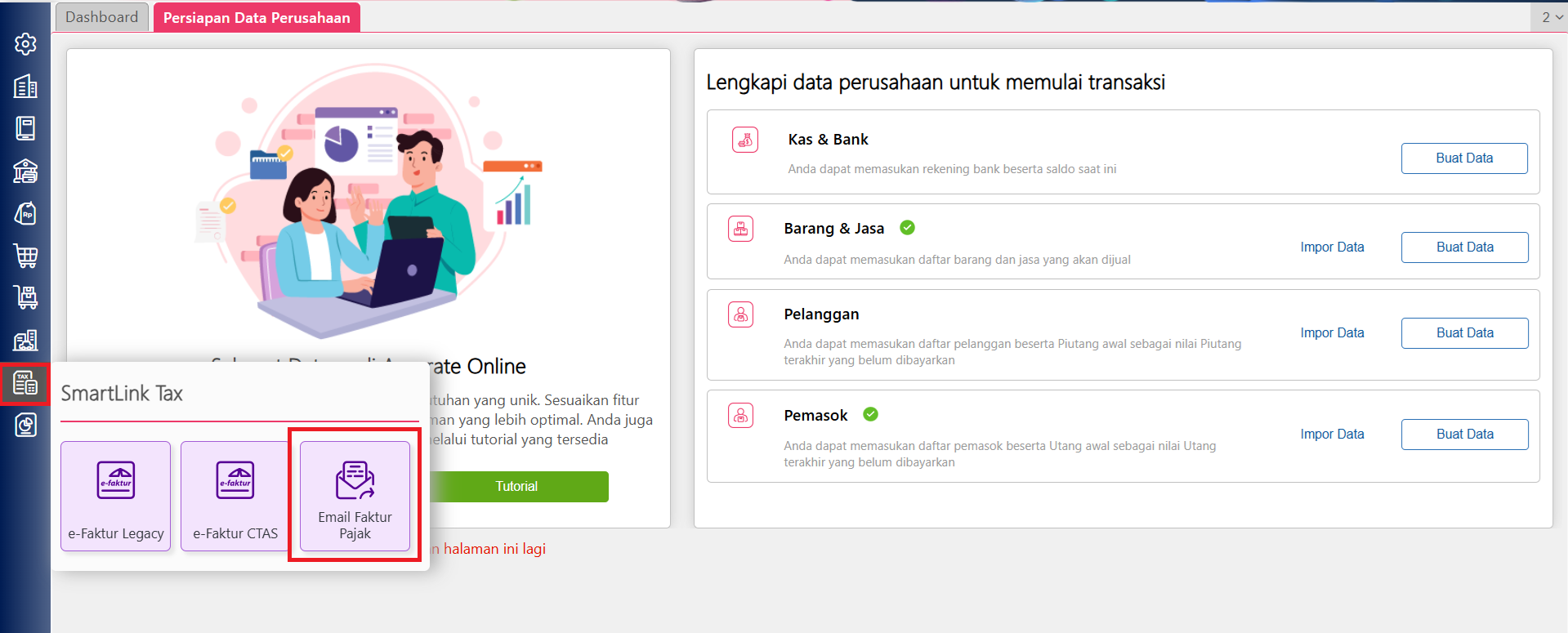 3. Selanjutnya masuk ke Accurate Online Anda dan klik menu Smartlink Tax | Email Faktur Pajak.