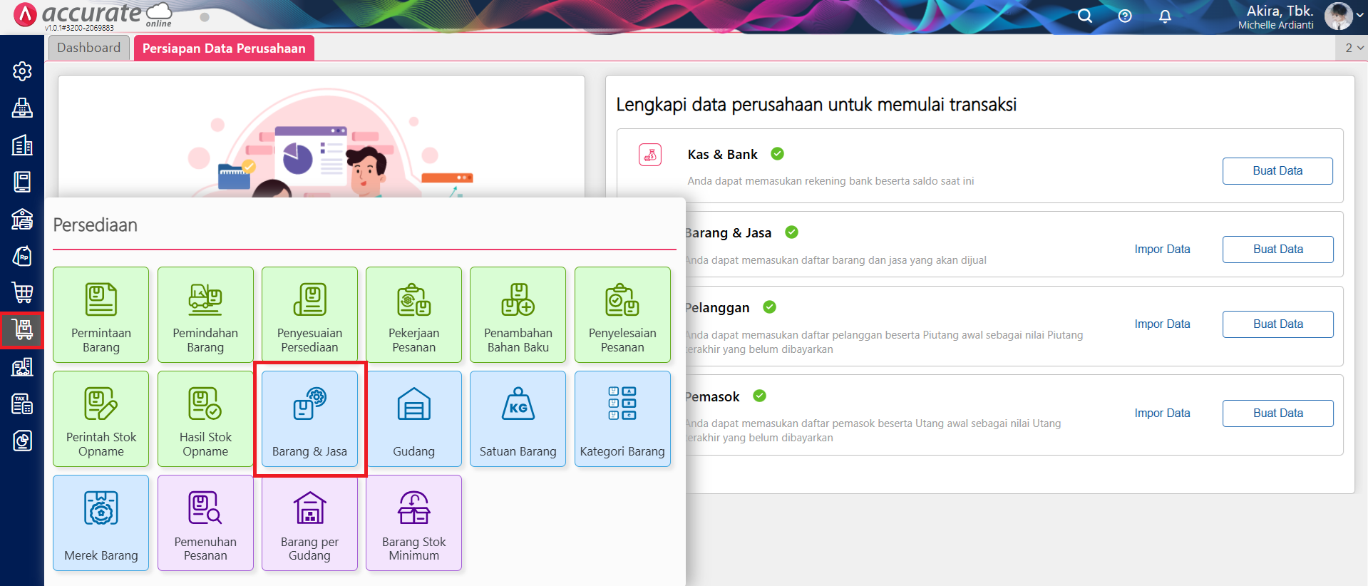 Akses menu Barang & Jasa
