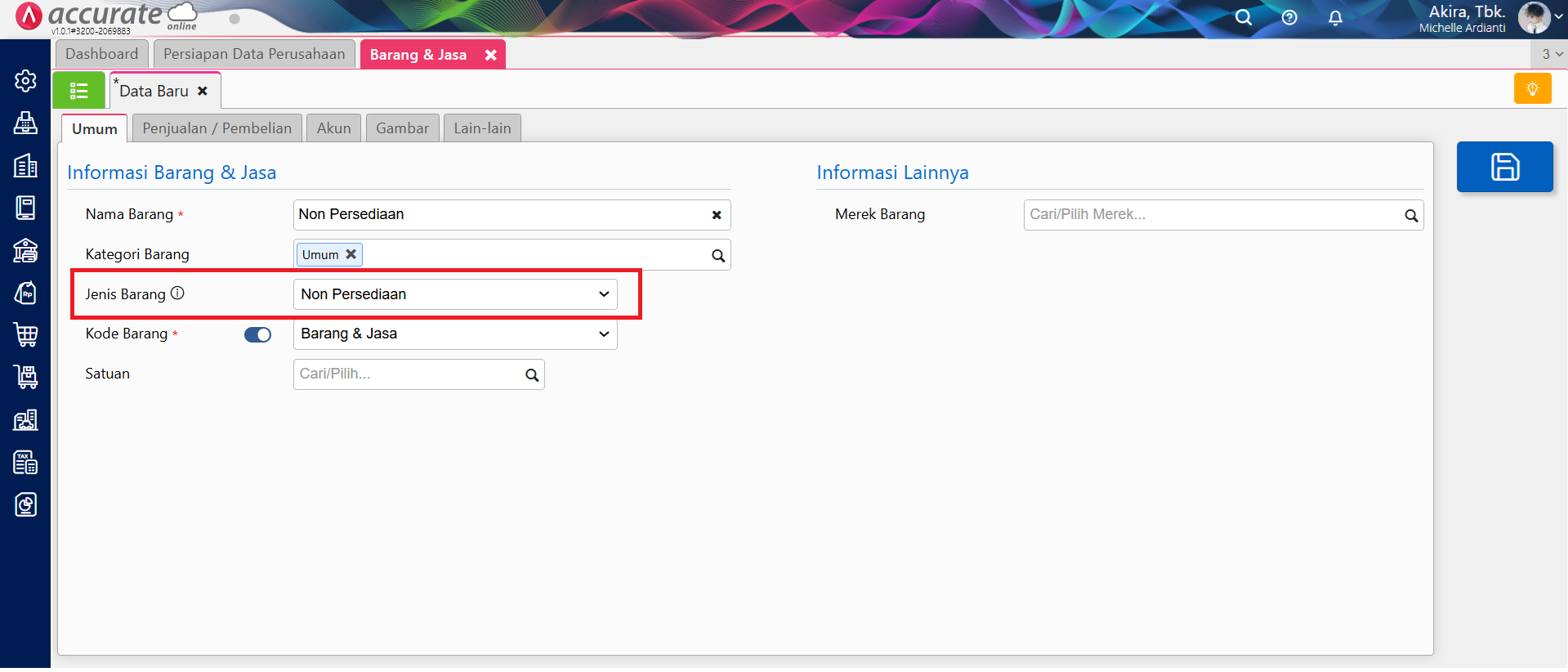 Buat data barang dengan jenis ‘Non Persediaan’