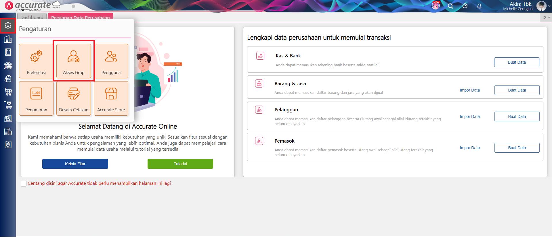 - Akses menu Pengaturan | Akses Grup.