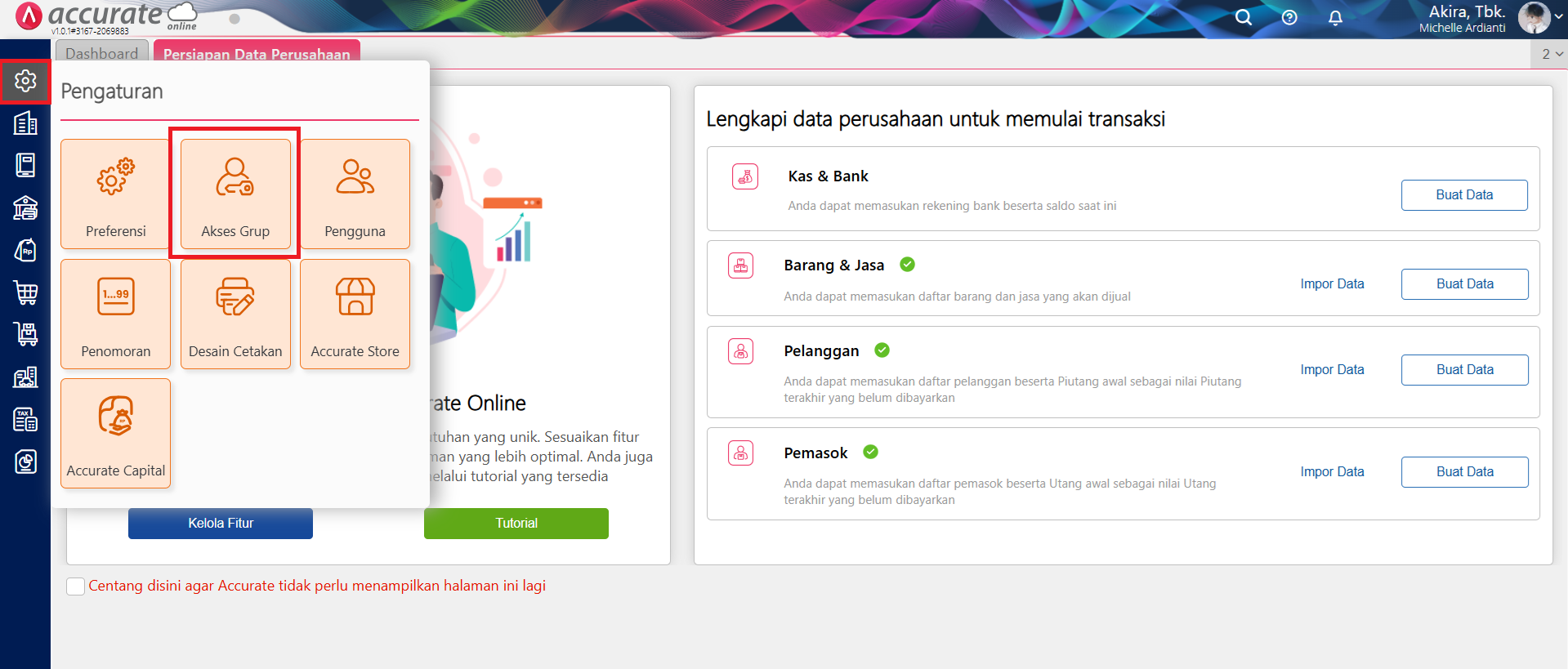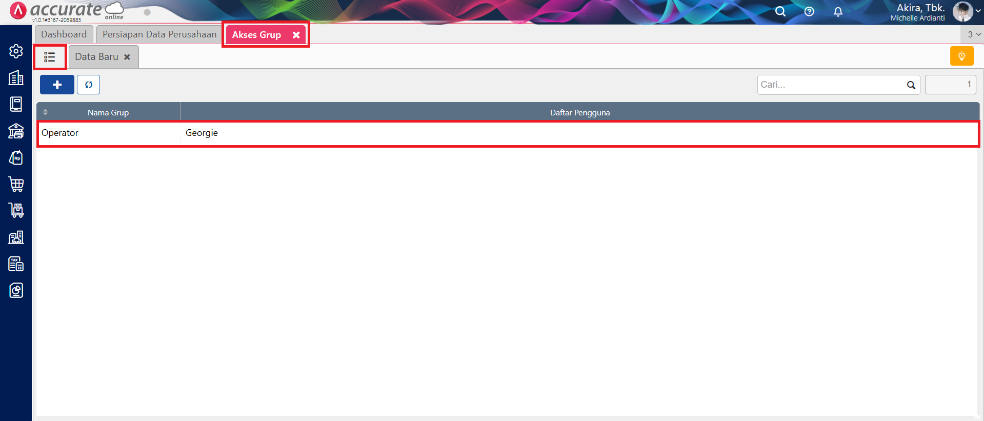 1. Masuk ke database dengan Pengguna level Administrator, lalu ke menu Pengaturan | Akses Grup.