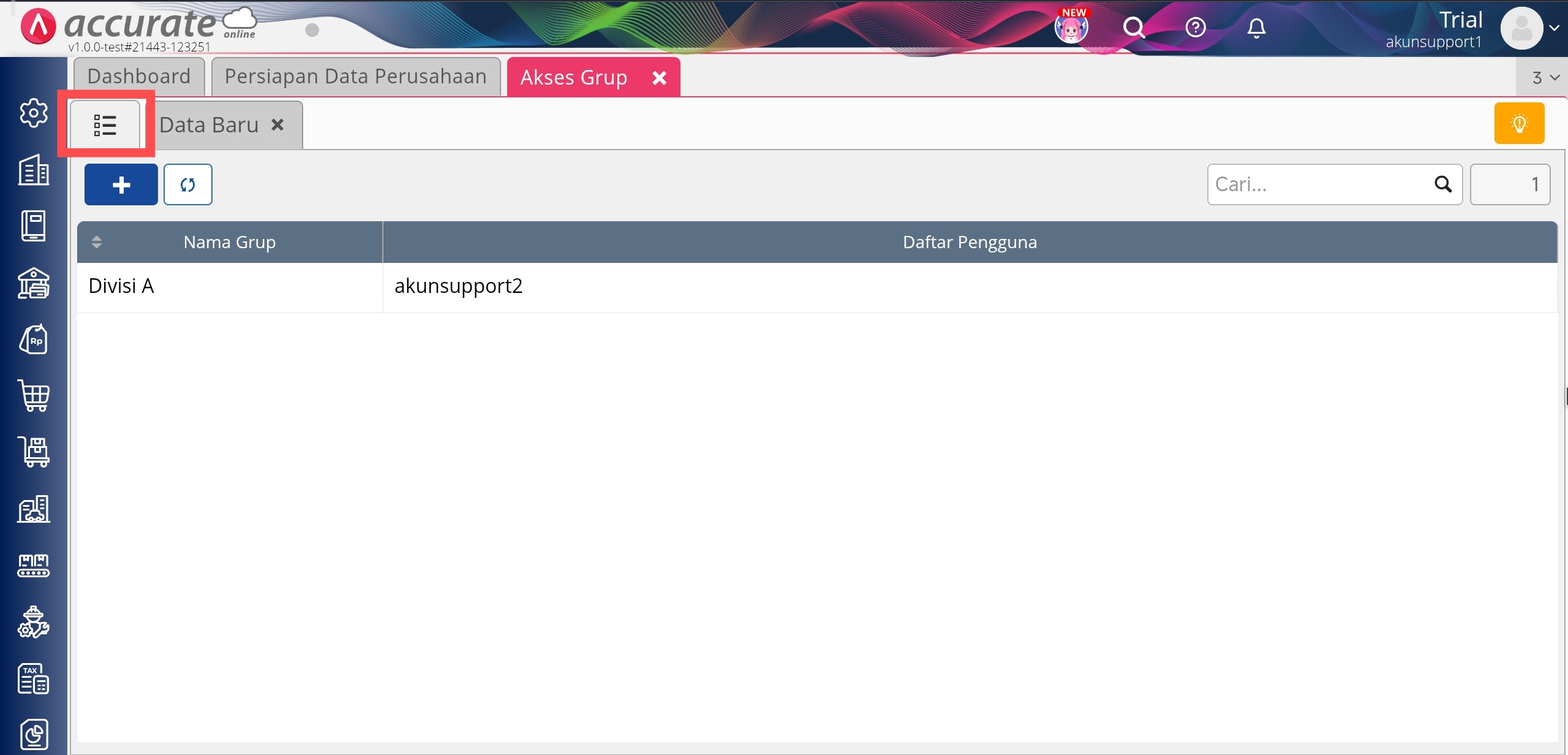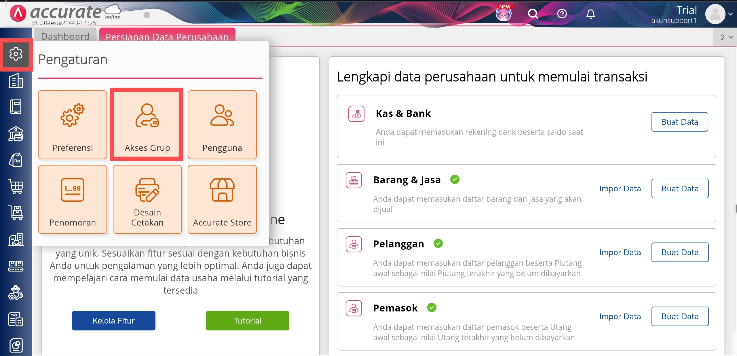 2. Ke menu Pengaturan | Akses Grup.