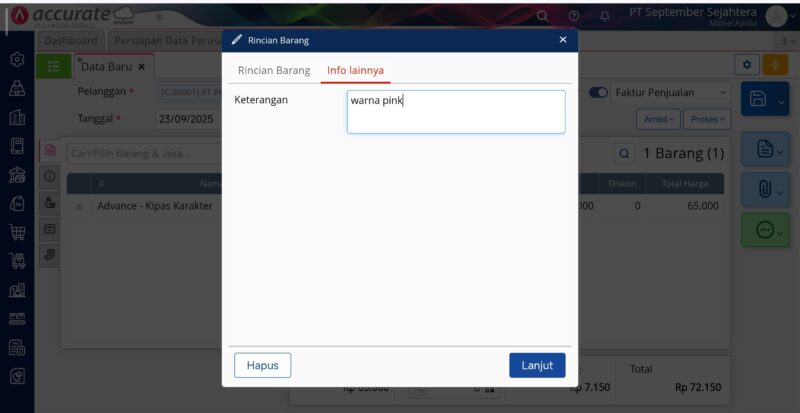 Faktur Penjualan dengan Menambahkan Keterangan di Rincian Barang