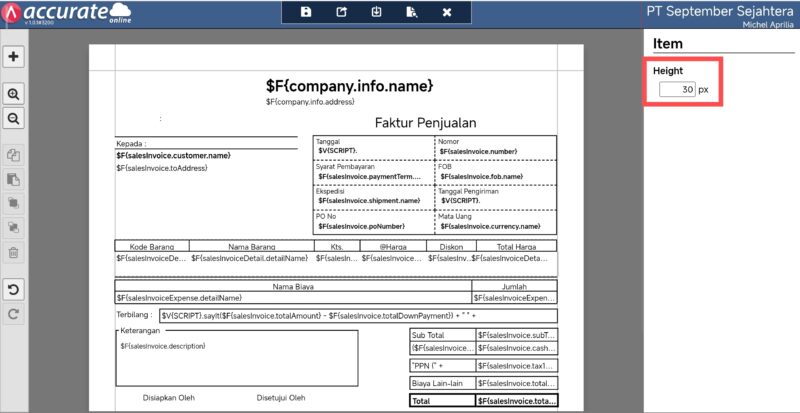 - Ubah ukuran height pada item, dalam hal ini menambahkan ukuran height sehingga terdapat ruang untuk menambahkan/meletakan variable baru di bawah variabel Nama Barang.