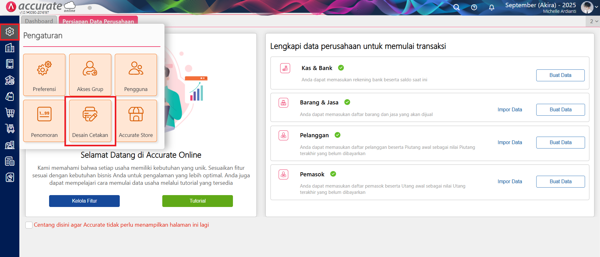 Akses menu Desain Cetakan