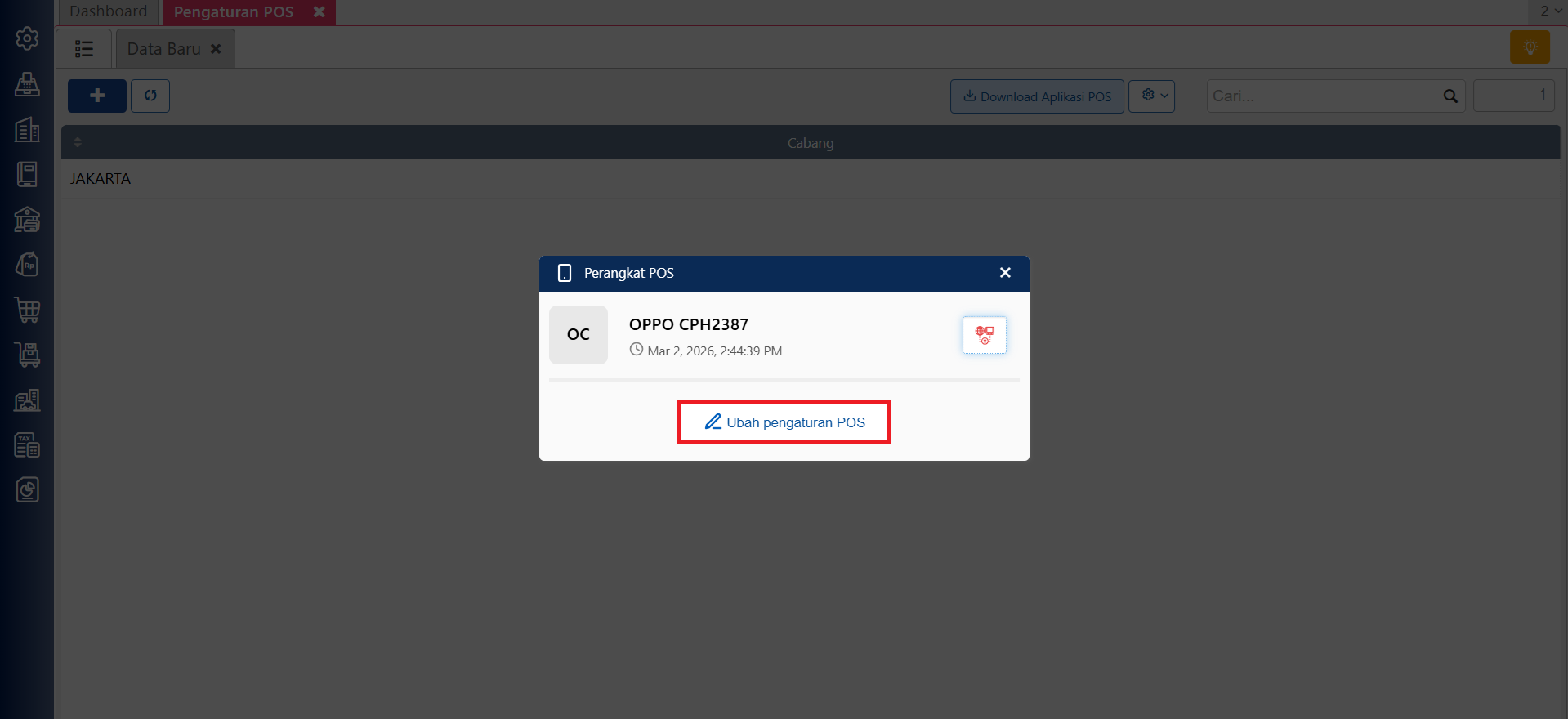 - Lalu klik Daftar | Pilih Outlet yang ingin dilakukan perubahan, dan klik Ubah Pengaturan POS.