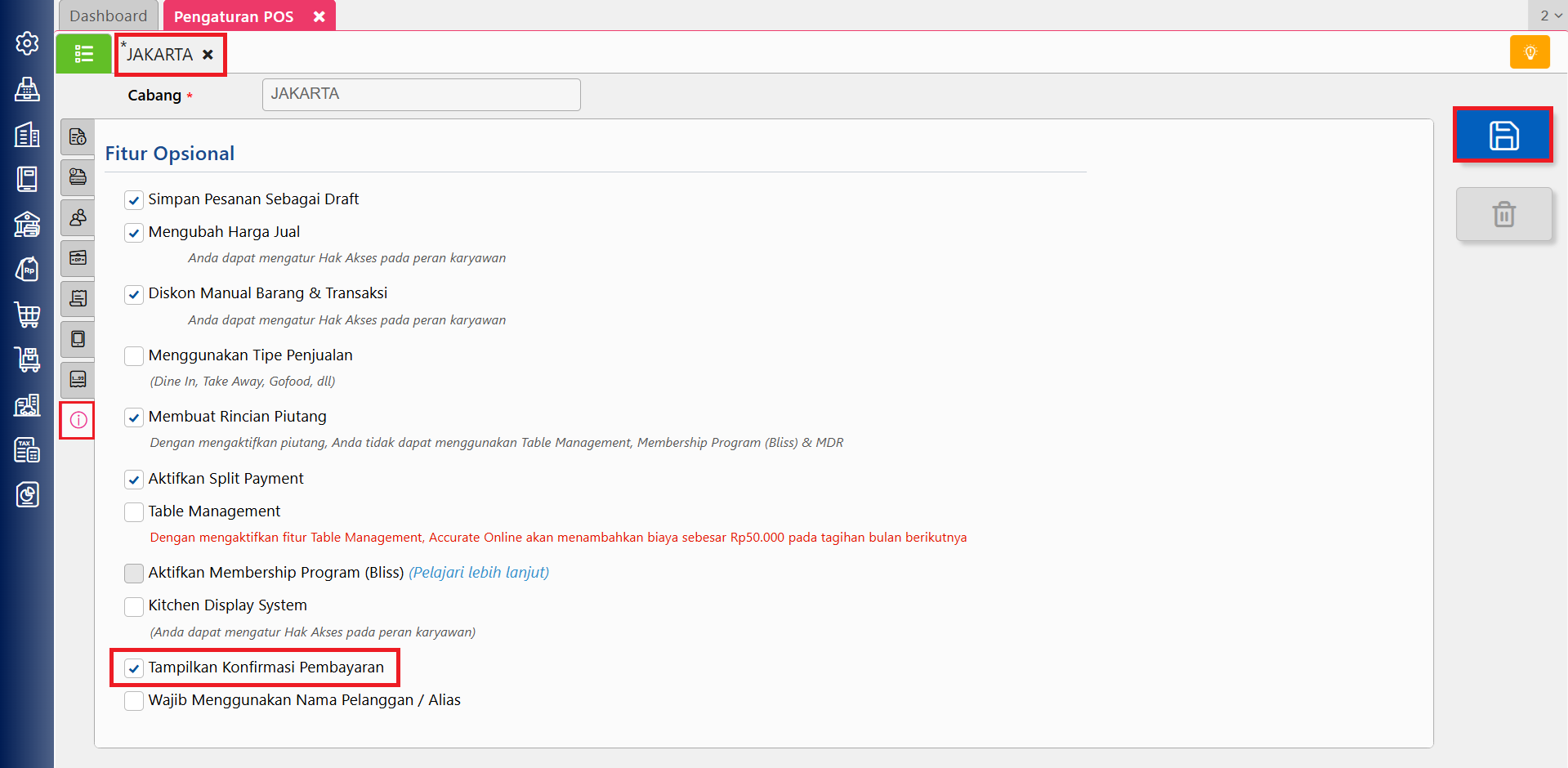 Berikut langkah-langkah menampilkan konfirmasi pembayaran pada Accurate POS: