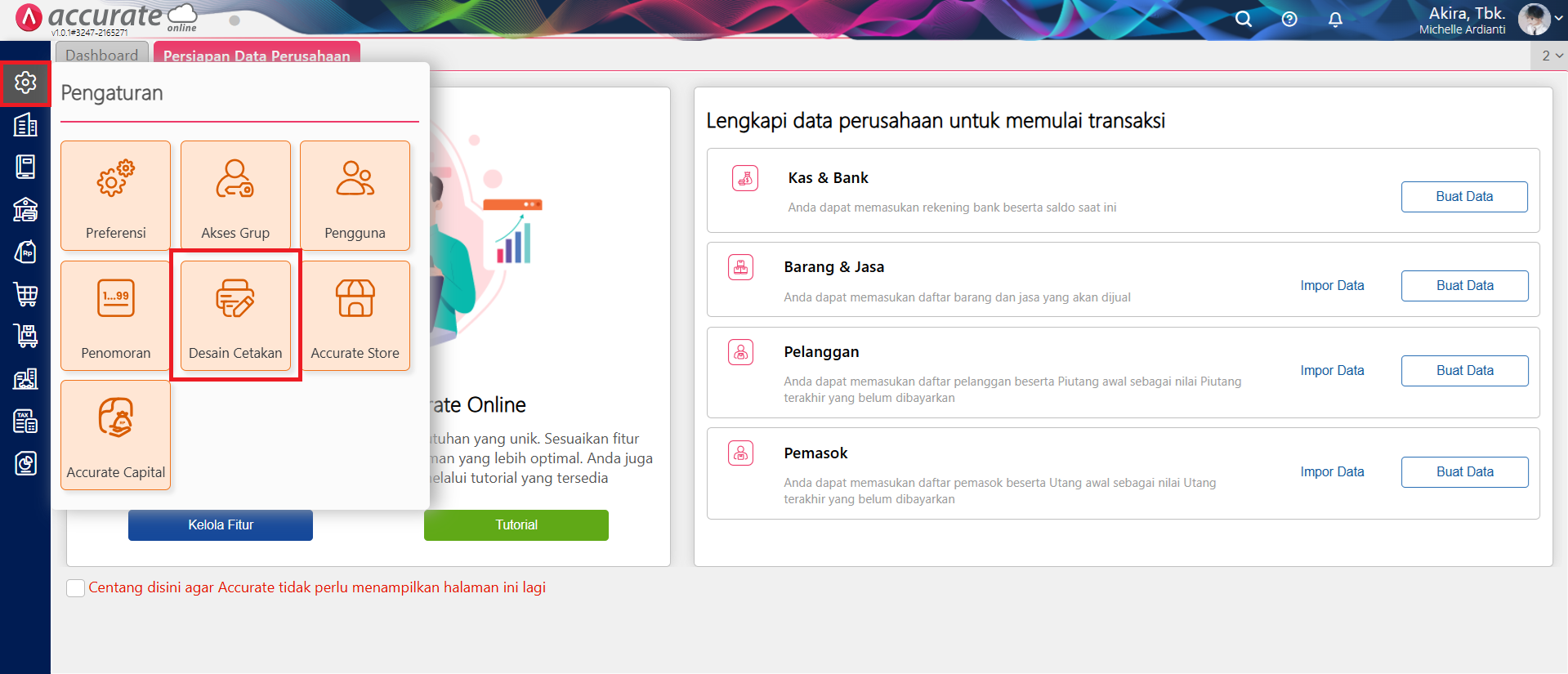 Akses menu Desain Cetakan